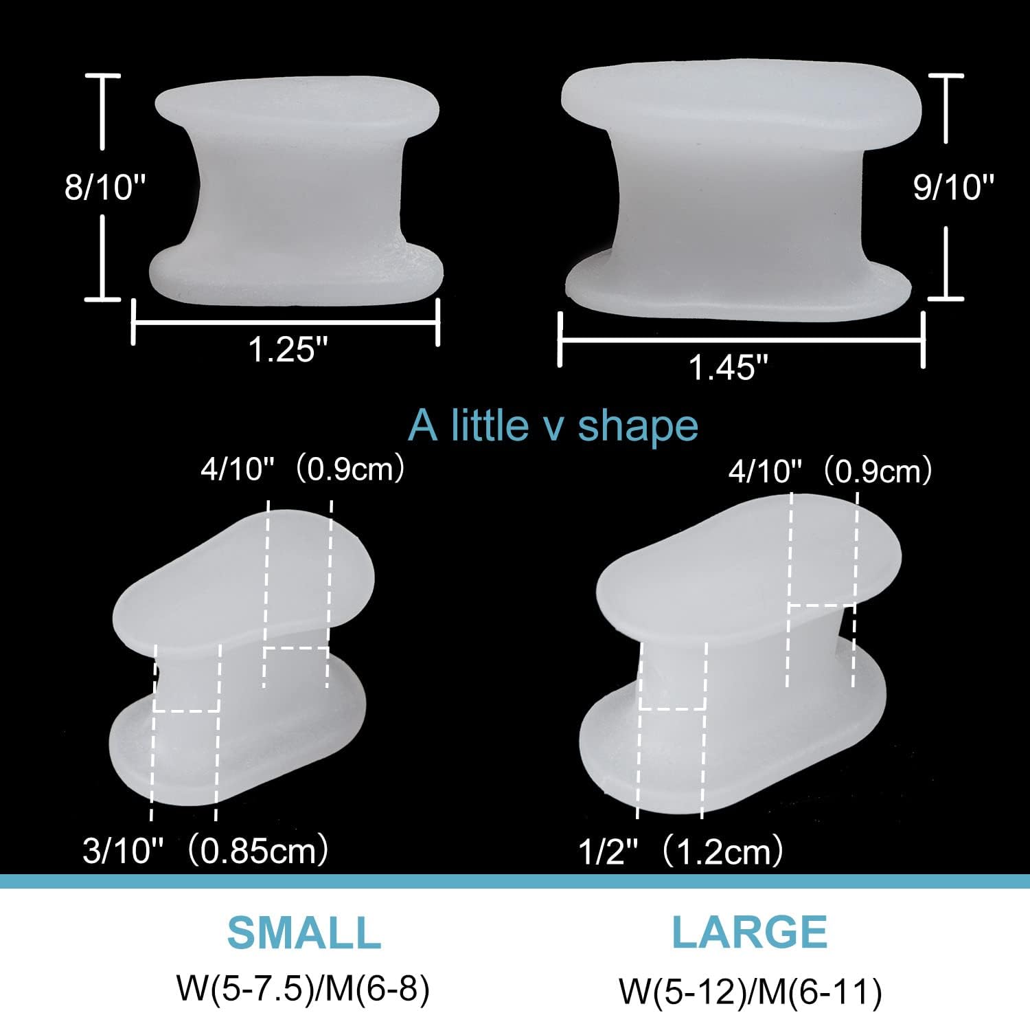 - Stay in Place design: Flanged silicone separators is like a ring around your second toe to provide space between you second and big toe which make it stays firmly on toes.