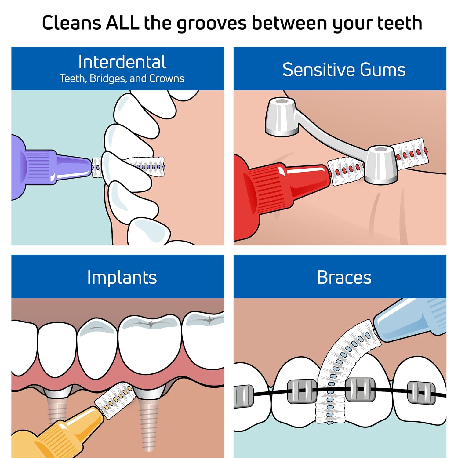 - INTERDENTAL BRUSH: Our Extra Soft interproximal brush is designed to clean gaps between your teeth that a normal toothbrush can’t reach. It has supersoft filaments that are perfect for use with sensitive gums and teeth, dry mouths, and oral lesions.