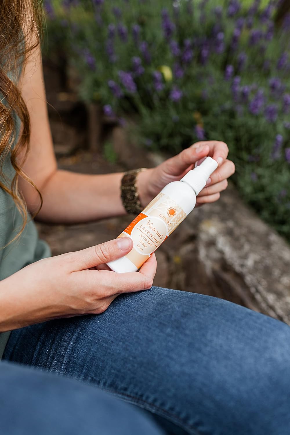 - AFTER SUN CARE: Refresh yourself after a day in the sun. It's important to take care of your skin whenever you get exposed to the sun's rays. Victoria's Lavender's after sun spray is infused with natural ingredients like aloe gel, witch hazel, and lavender essential oil that provides a convenient skincare solution anywhere you are.