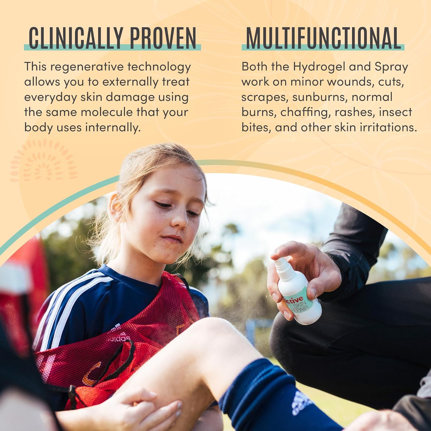 - TOUGH ON GERMS: ACTIVE Skin Repair's first aid spray and gel are medical grade skin solutions. It acts quickly to provide relief and helps support the body's response