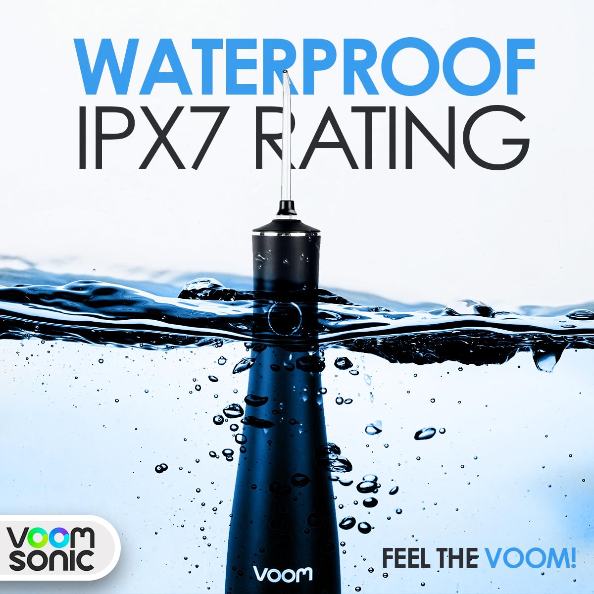 - Large Capacity Water Reservoir: (7 FL OZ) The Voom Sonic Monsoon has a Large Capacity water reservoir for uninterrupted flossing and deep plaque removal & is enough for a 60-second full mouth clean. Ideal for braces, implants, and orthodontic appliances, no need to refill or pour out the remaining water. The Monsoon can run continuously for over 10 minutes before needing a recharge!