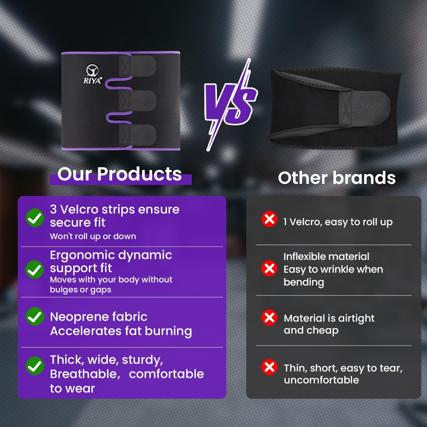 - Custom Fit for All Body Shape - The upgraded RIYA waist trimmer features triple adjustable Velcro straps for a secure, customized fit that stays perfectly in place, with no rolling, slipping, or riding up no matter how intense your workout. If you prefer full belly coverage and a tighter wrap β PLEASE SIZE UP FOR BEST RESULTS.