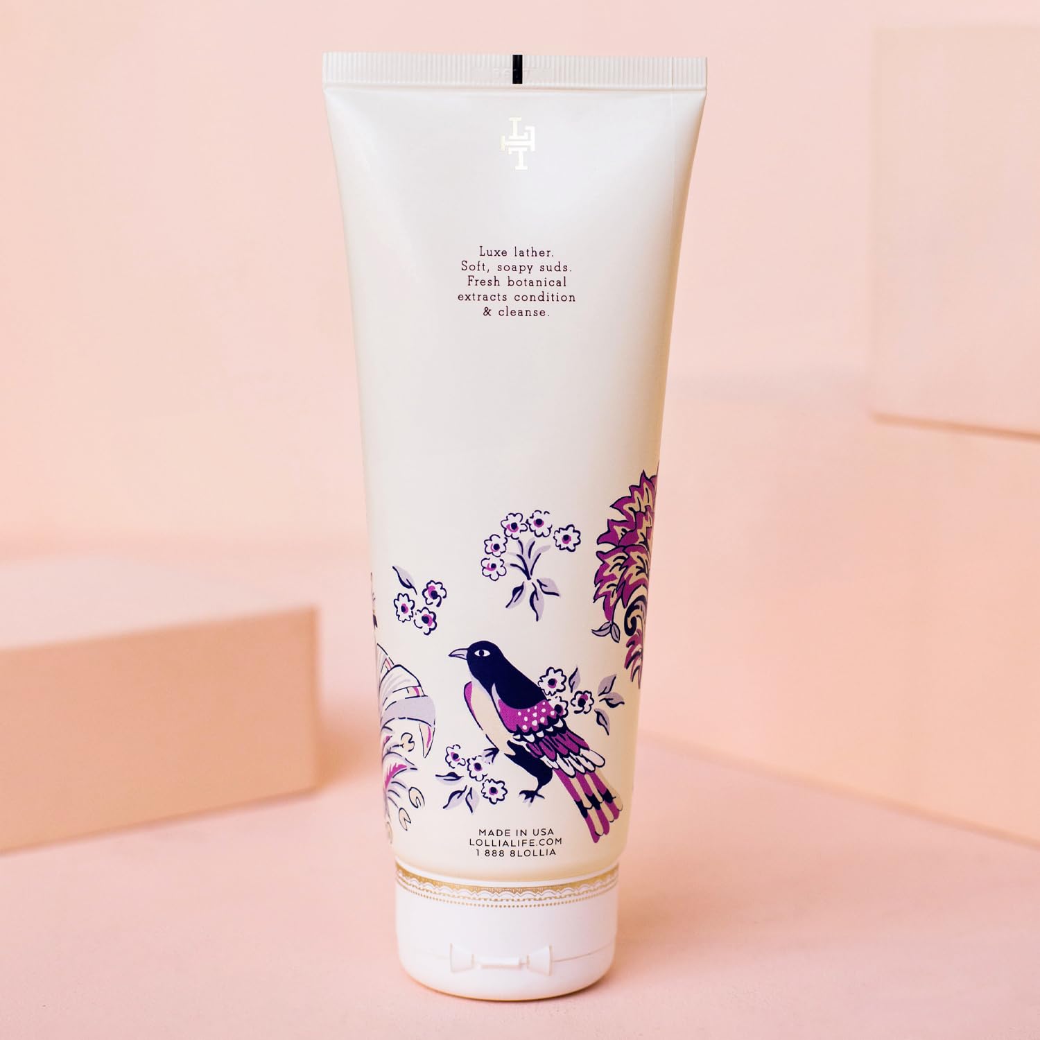 - A BEAUTIFUL SHOWER ACCESSORY: The sophisticated satin-touch tube of liquid soap is encased by striking songbirds that perch amid a dreamy chinoiserie-inspired garden scape. Complete with delicate gold detailing to add a touch of elegance to any shower.
