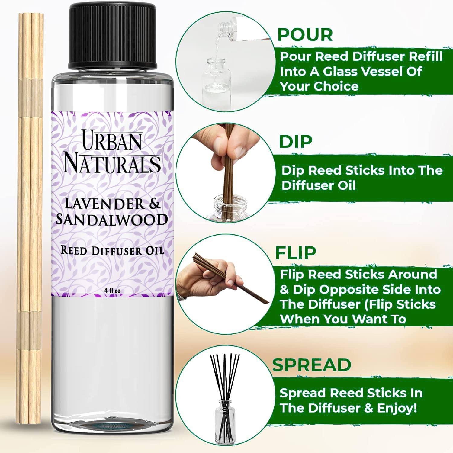 Urban Naturals Lavender & Sandalwood Scented Oil Reed Diffuser Refill and Reed Sticks, 4 oz (2 Pack)