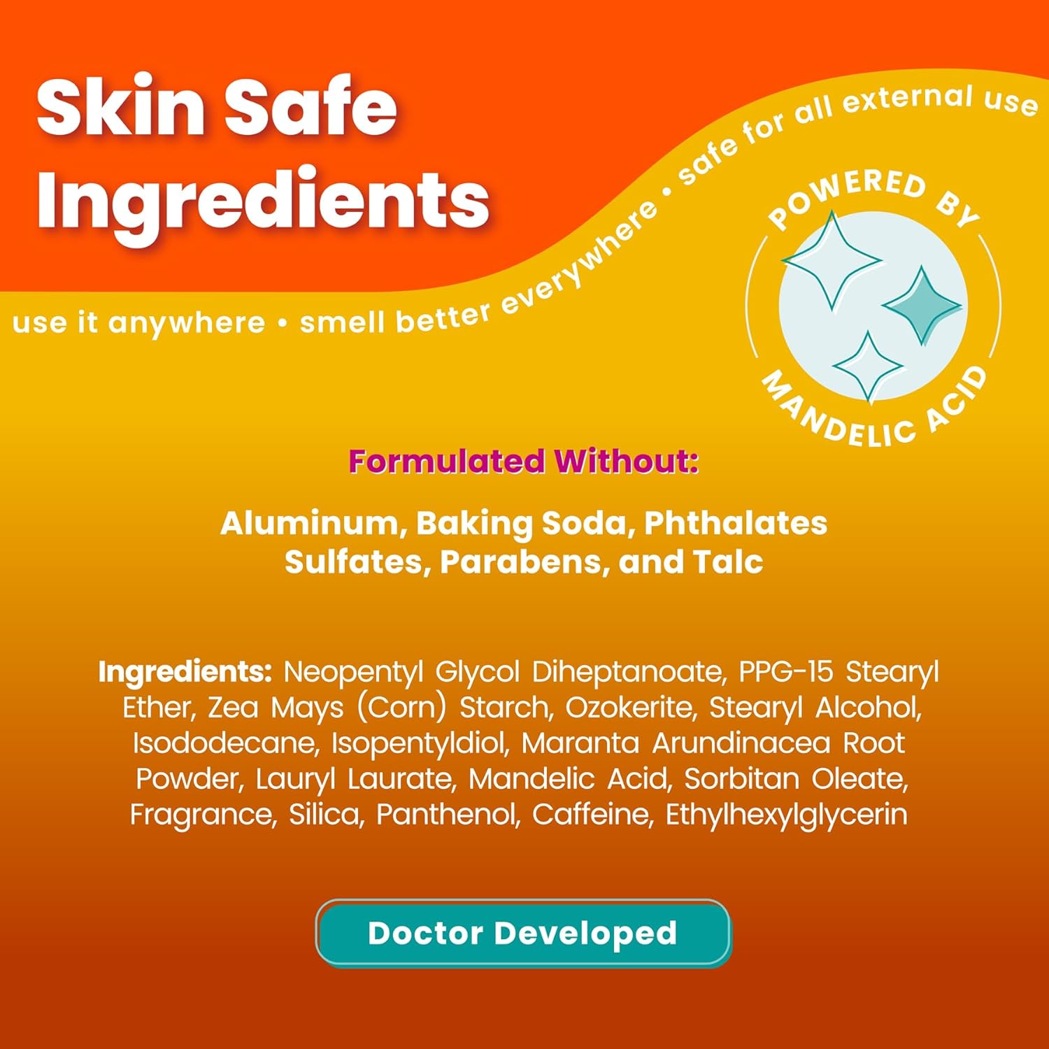 - SERIOUSLY SAFE - Doctor developed and safe for any external use. Aluminum free, baking soda free, and paraben free. Hypoallergenic and skin safe for even our most sensitive parts.