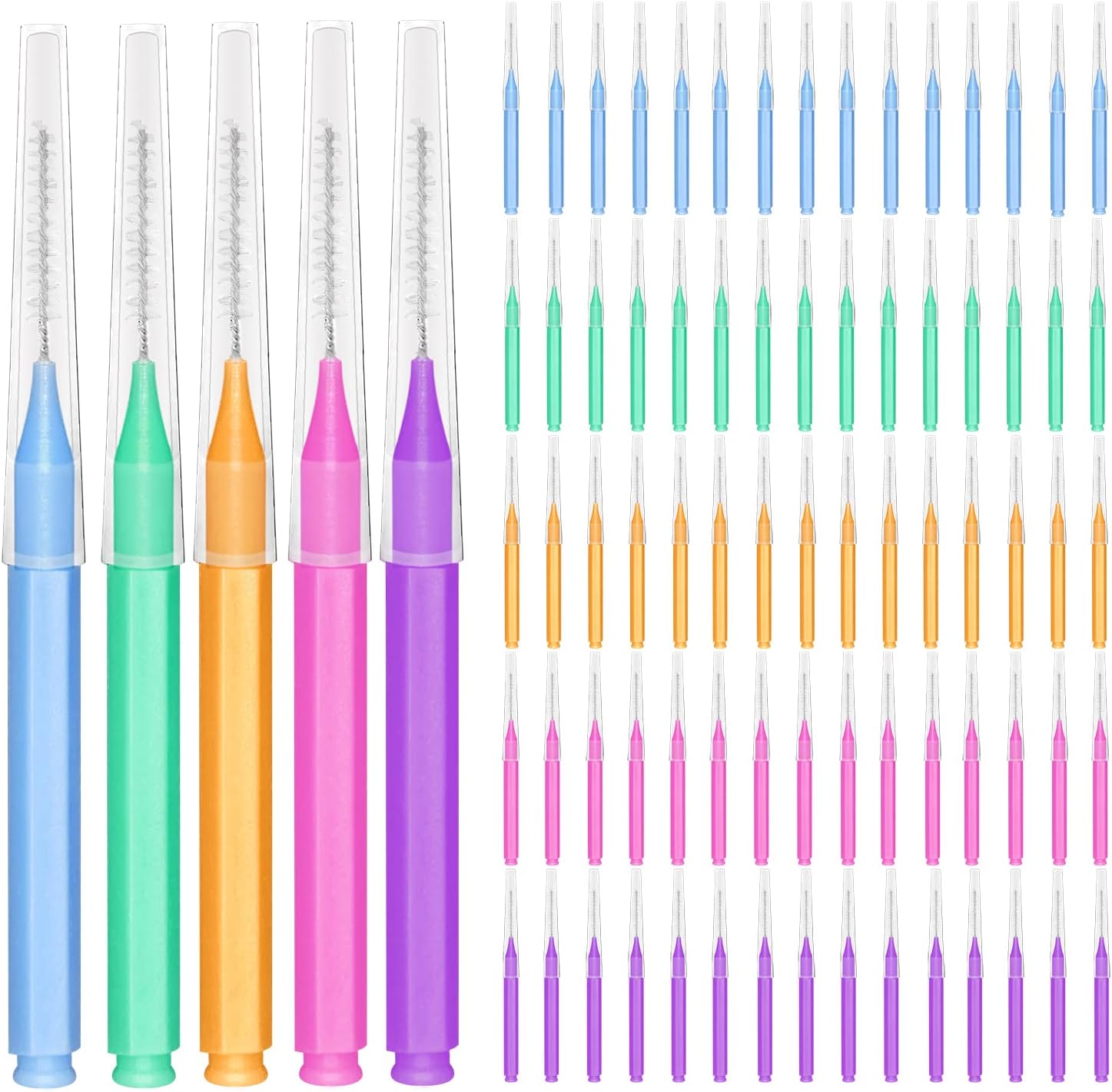 - [VARIOUS SIZES] Five bright colors (orange,green, purple, blue and pink) ,Their head diameter has a variety of specifications and is suitable for different gaps of teeth.