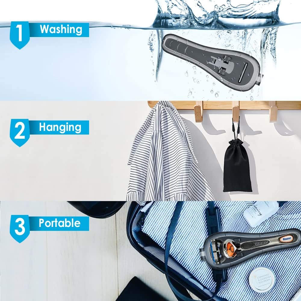 - Razor Travel Little Lifesaver: Razor Travel Case + Storage Bag, dual protections, This razor case are perfect to hold your razor and protects the blades and you from getting nicked, keep your razor from being exposed to dust and contaminants, and stays closed properly. excellent product for travel, camping, hiking or business trip, It does have openings for water to fall out while the razor dries if it does get put in while wet, No more worrying about moisture and rust! (Appreciated).