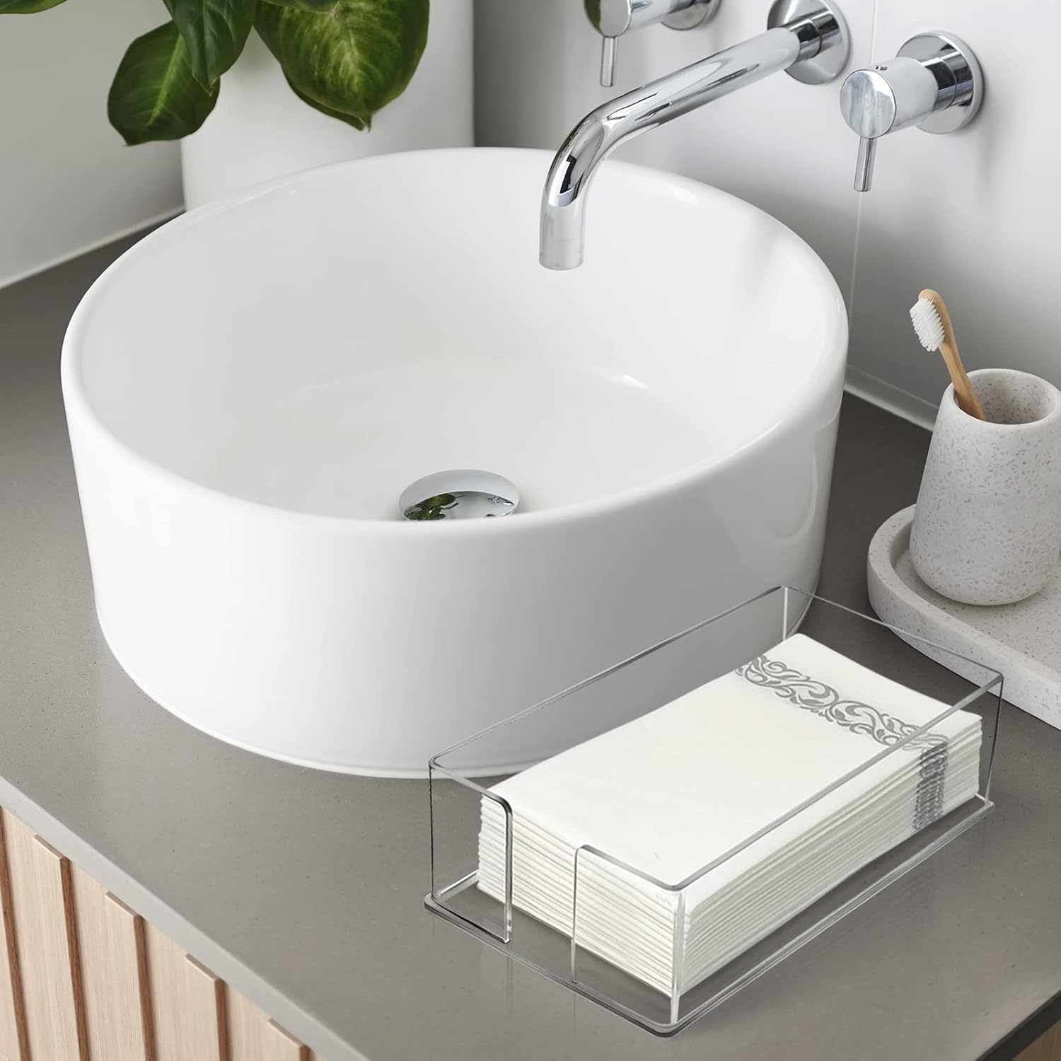 - 【MAXIMUM CAPACITY】Bathroom napkin holder fits standard 8.5 x 4.5 inch guest towel/buffet napkins,napkin caddy fits up to 20 guest towel napkins.