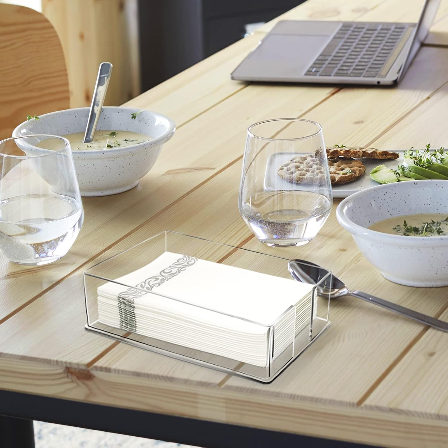 - 【UNIQUE DESIGN】Acrylic napkin holder have a large opening on the side for easy to fill and take out napkins and keep them always clean and tidy.4 non-slip feet keep it from slipping and scratching your table top.