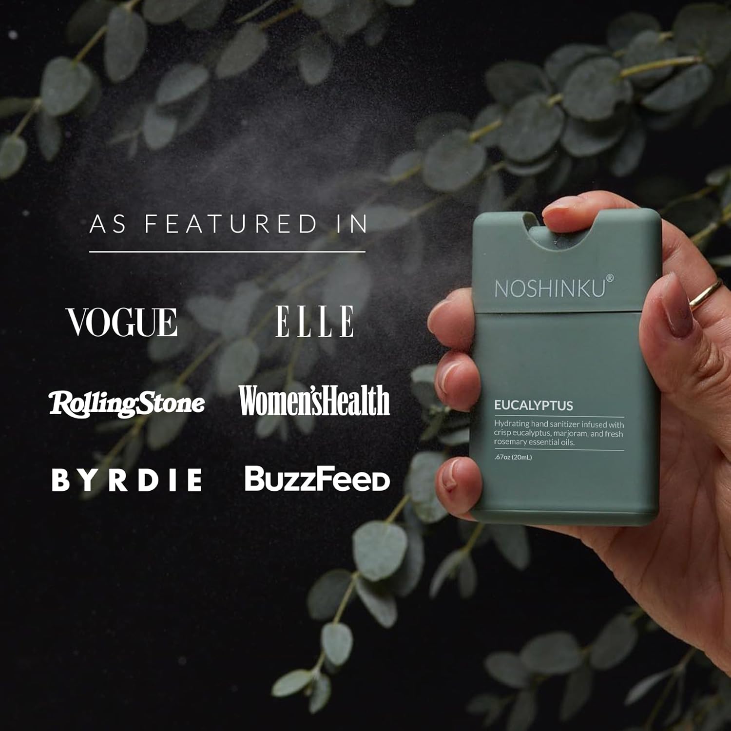 Noshinku - Refillable Hand Sanitizer Eucalyptus 3-Pack, Travel Size Spray with Hydrating Botanical Oils, Natural Ingredients, All Natural Fragrances, Sugarcane Derived Alcohol, No Parabens, No Dyes