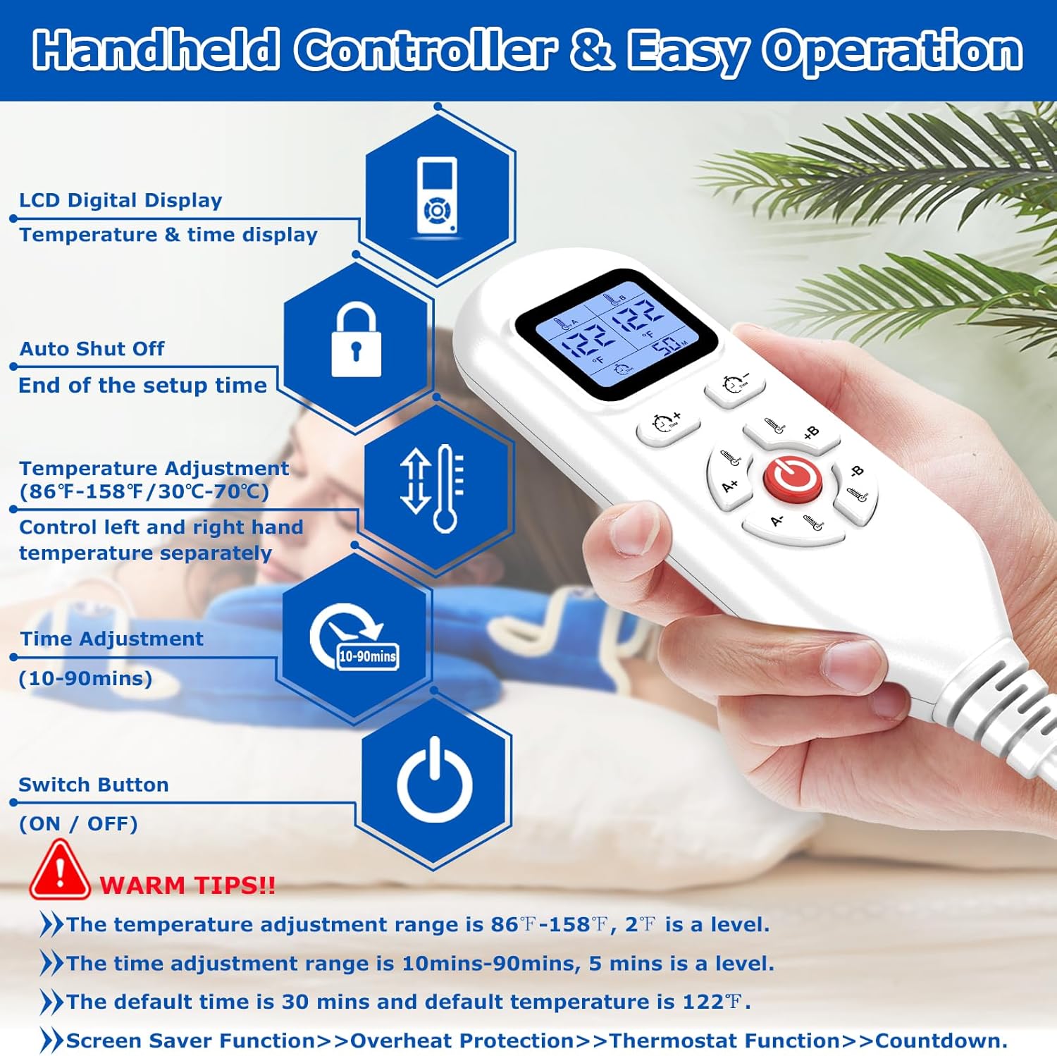 CAMECO Electric Heated Mittens for Hands & Fingers, Heating Pad & Gloves for Carpal Tunnel, Arthritis, Tendonitis Pain Relief, Auto Shut Off Heat Therapy Hands Warmers for Men Women, 86-158℉ (A Pair)