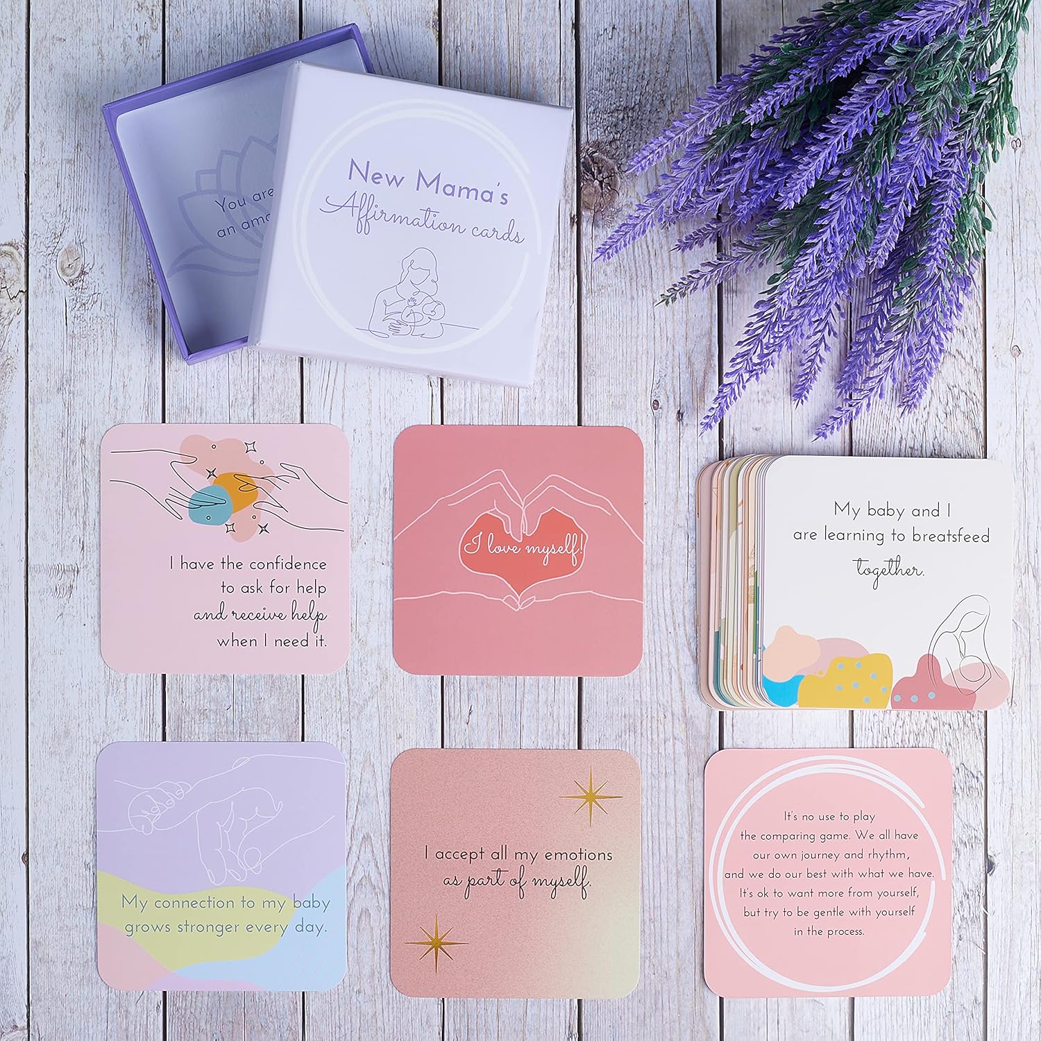 Ariond 31 New Mom Affirmation Cards for Post Partum/Postpartum Self Care with Empowering Messages on the verso of each card | New mom essentials gifts for women after birth