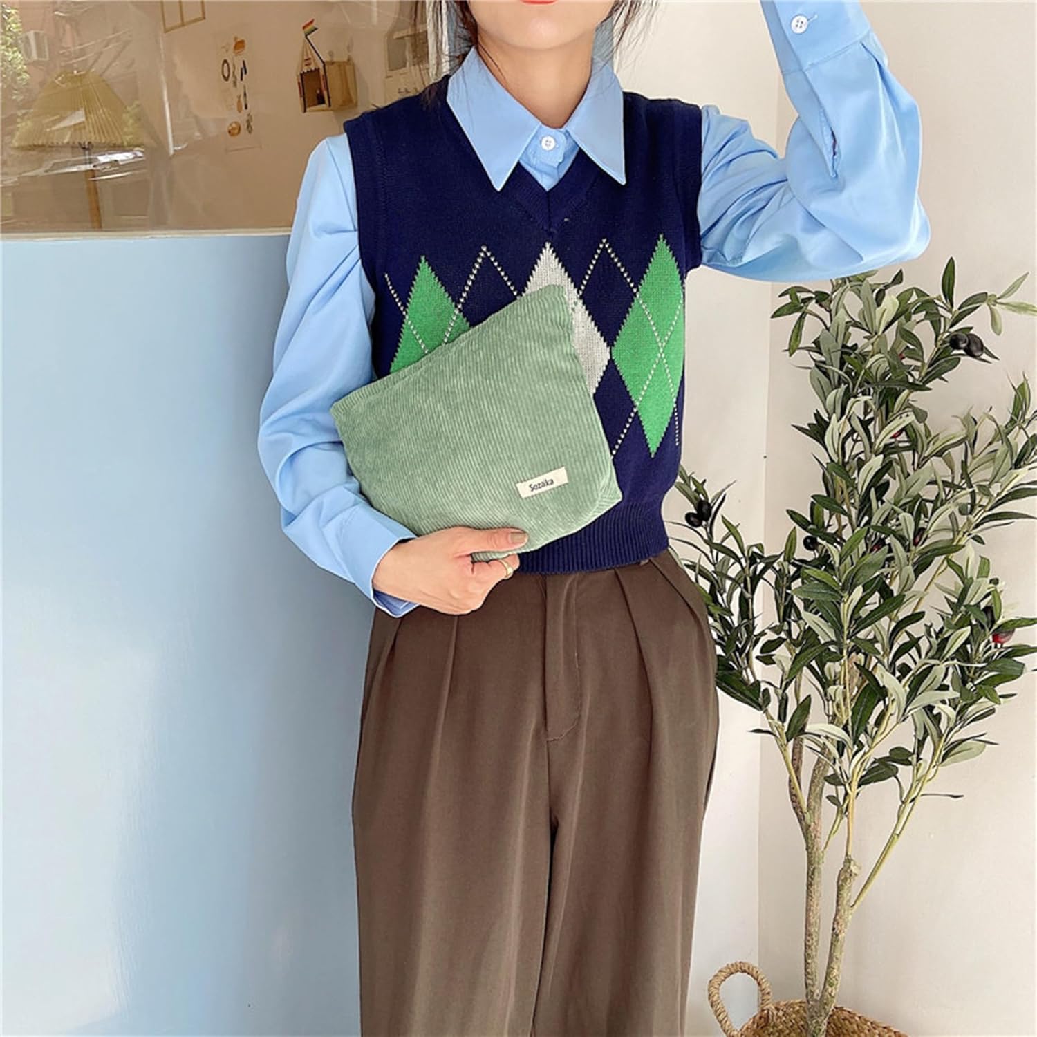Cosmetic Bags for Women - Corduroy Cosmetic Bag Aesthetic Women Handbags Purses Smile Dots Makeup Organizer Storage Makeup Bag Girls Case Bags (Pure Green)