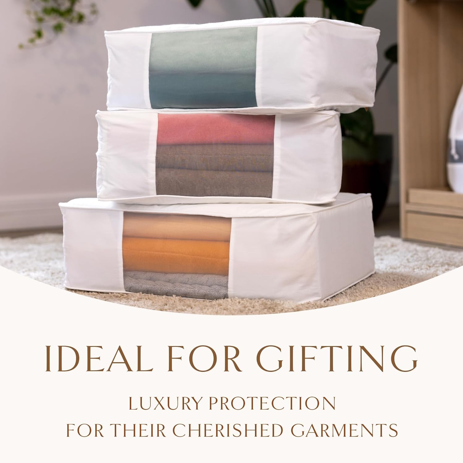 Hayden Hill Luxury Organic Cotton Sweater Storage Bag - Fits 4 Fine Knits - 15 Inch - Breathable Clothes Storage For Cashmere - Clothing Storage and Organizer For Closet - Certified Carbon Neutral