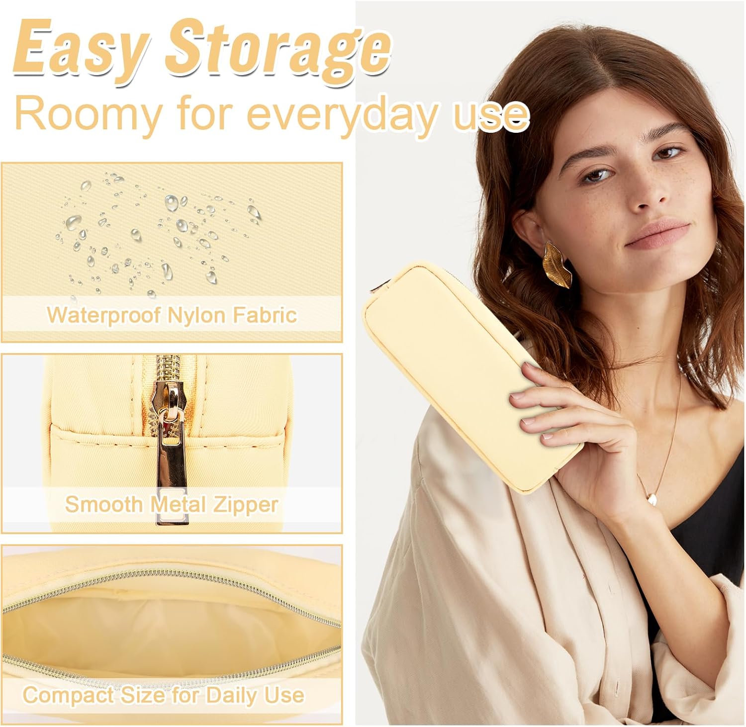 - ❤【Premium Materials】Slim Small makeup bag is made of high-quality nylon waterproof material and durable gold zipper, which does not fade, has no peculiar smell, and is durable. Stylish appearance, easy to wipe clean, dustproof and waterproof. The makeup pouch interior is covered with thick sponge to protect your belongings at all times.