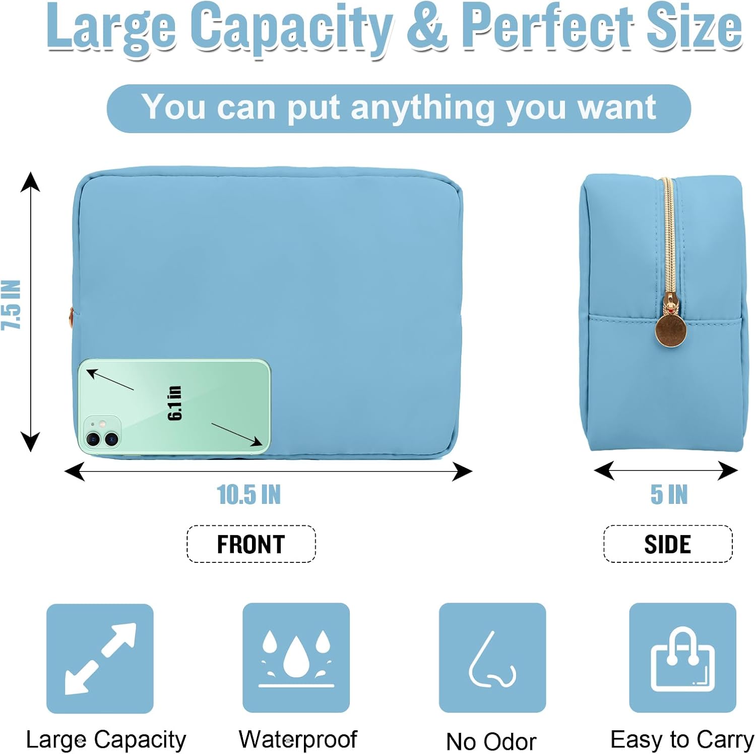 Nylon Large Makeup Bag Travel Cosmetic Bag Pouch, Preppy Big Makeup Bag Cute Cosmetic Zipper Pouch Purse, Waterproof Toiletry Bag Clutch Make Up Organizer Travel Essentials for Women Men Girls(Blue)