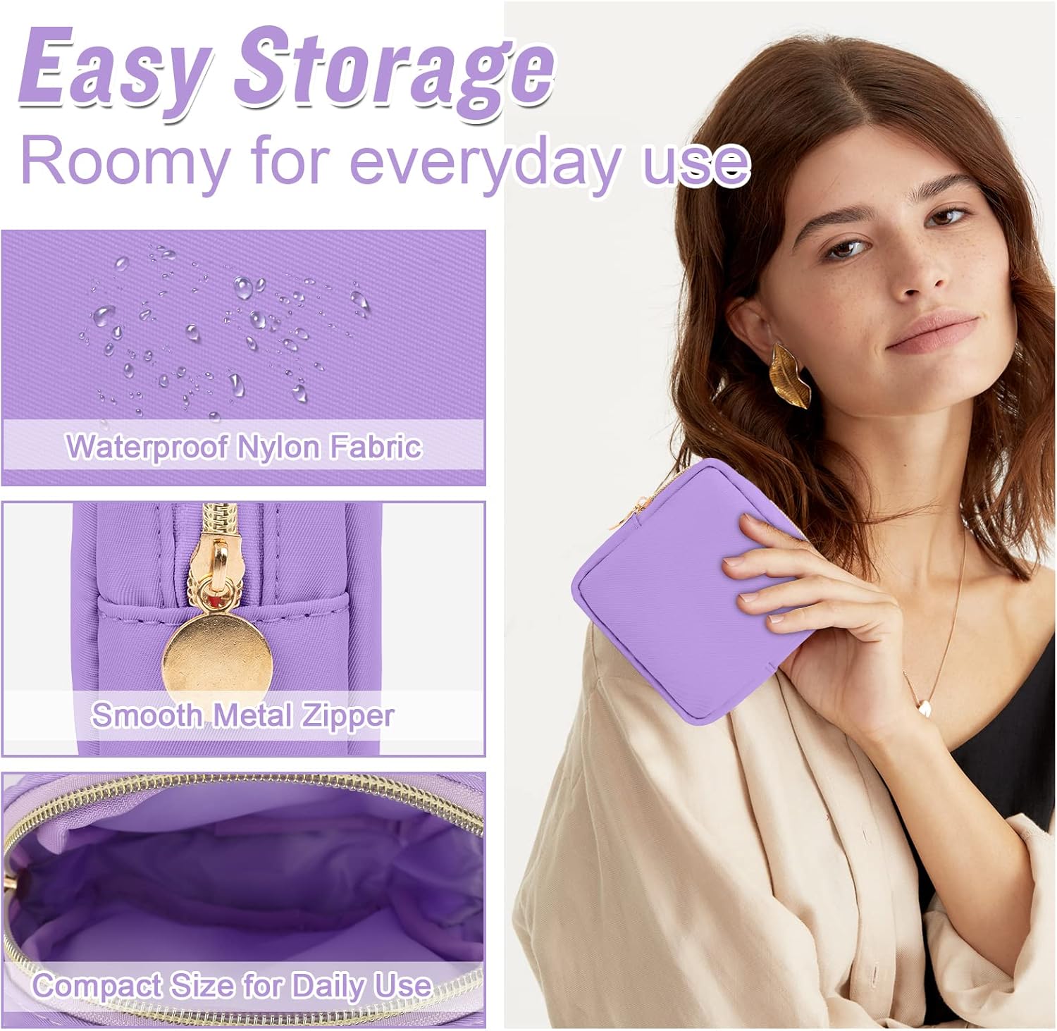 - ❤【Multiple Sizes & Colors】Large, Small, Mini, or Slim, we have it all! Cosmetic bags are available in many colors: Hot Pink, Beige, Black, Blue, Pink and other colors for you to choose. Nylon makeup bag for purse can be used for travel, outdoors and organization, it can be used as a purse bag, travel pouch, clutch, makeup organizer and more.