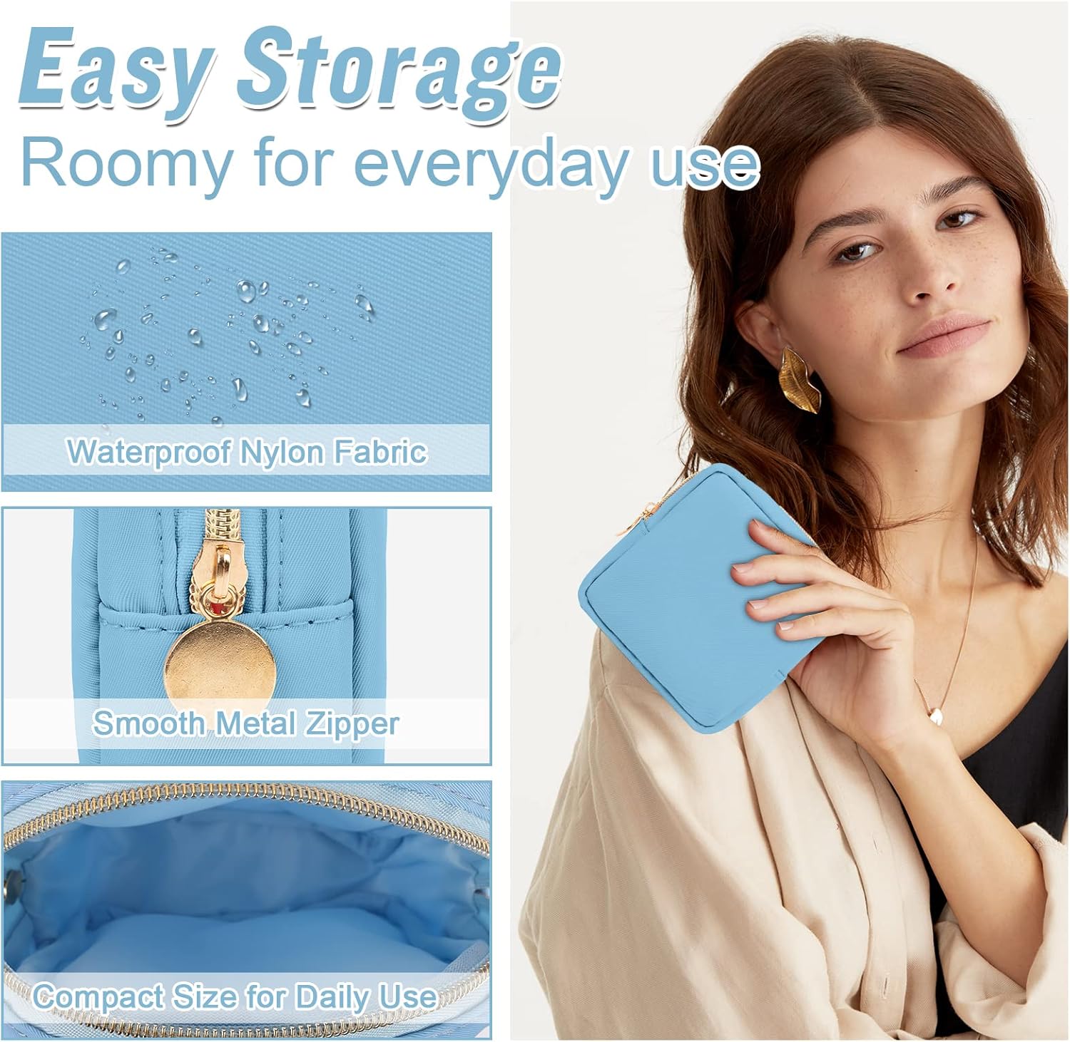 - ❤【Multiple Sizes & Colors】Large, Small, Mini, or Slim, we have it all! Cosmetic bags are available in many colors: Hot Pink, Beige, Black, Blue, Pink and other colors for you to choose. Nylon makeup bag for purse can be used for travel, outdoors and organization, it can be used as a purse bag, travel pouch, clutch, makeup organizer and more.