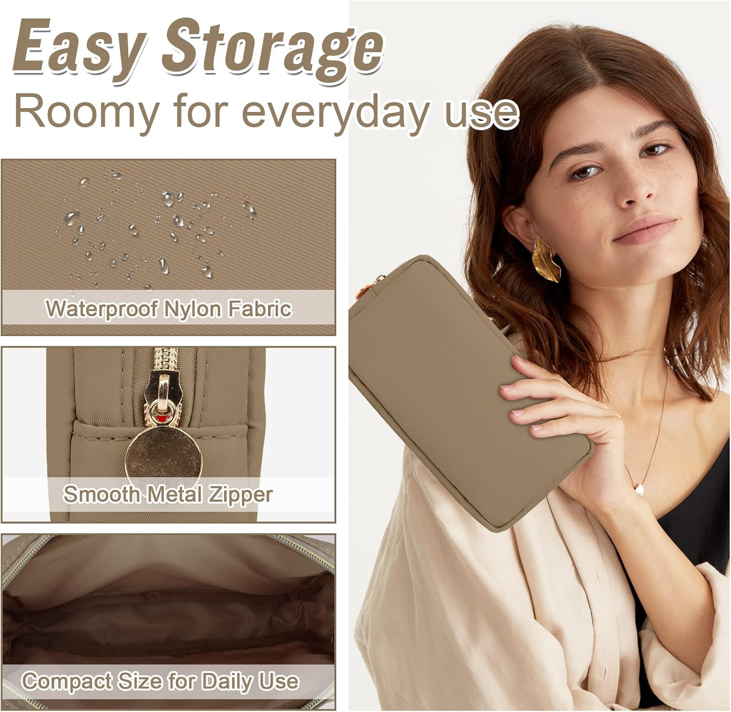 - ❤【Multiple Sizes & Colors】Large, Small, Mini, or Slim, we have it all! Cosmetic bags are available in many colors: Hot Pink, Beige, Black, Blue, Pink and other colors for you to choose. Nylon makeup bag for purse can be used for travel, outdoors and organization, it can be used as a coin pouch, purse bag, travel pouch, clutch, makeup organizer and more.