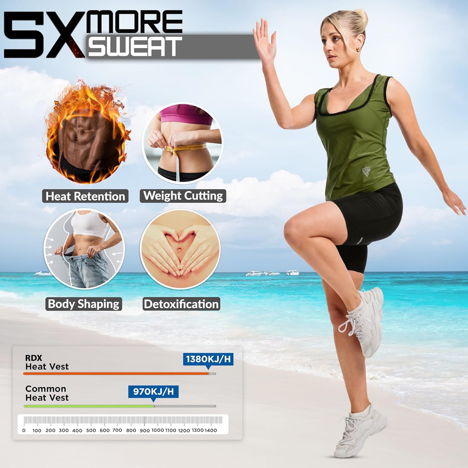 - SWEAT HARD, SHAPE YOUR BODY – Ready to perfectly shape your body? The RDX sauna shape wear vests are designed with meticulous attention to detail and are perfect for shaping and accentuating your body. Our sauna vests feature a revolutionary REACH and OEKO TEX 100 certified fabric, the blue inner heat reflective layer promotes better heat retention and fat burning. Experience faster weight-cutting and effortlessly target your abs, lower back, chest, and waist for a beautifully shaped figure.