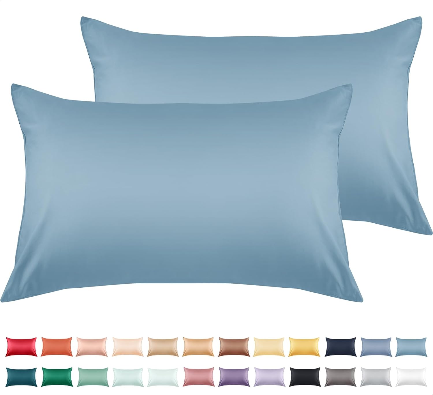 Warmstar Cotton Pillow Cases King Size Set of 2, 600 Thread Count Pillowcases 20x36 Inches, Soft Long Staple Cotton Pillowcases Breathable with Envelope Closure,Placid Blue