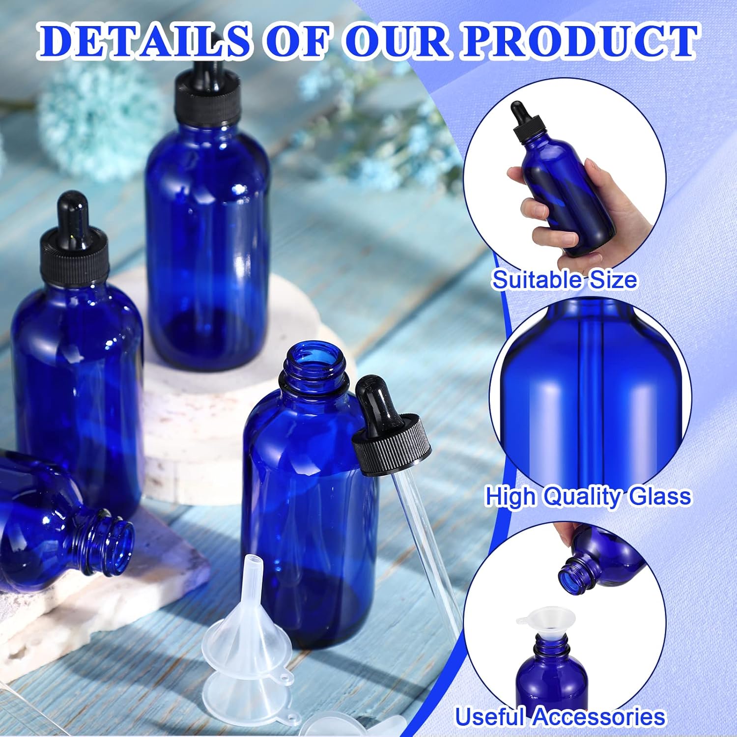 Dandat 50 Pack 4 oz Glass Dropper Bottles Leakproof 120 ml Glass Tincture Bottles with Eye Droppers, 4 Funnels, 54 Labels for Essential Oil Perfumes Hair Oil(Blue)
