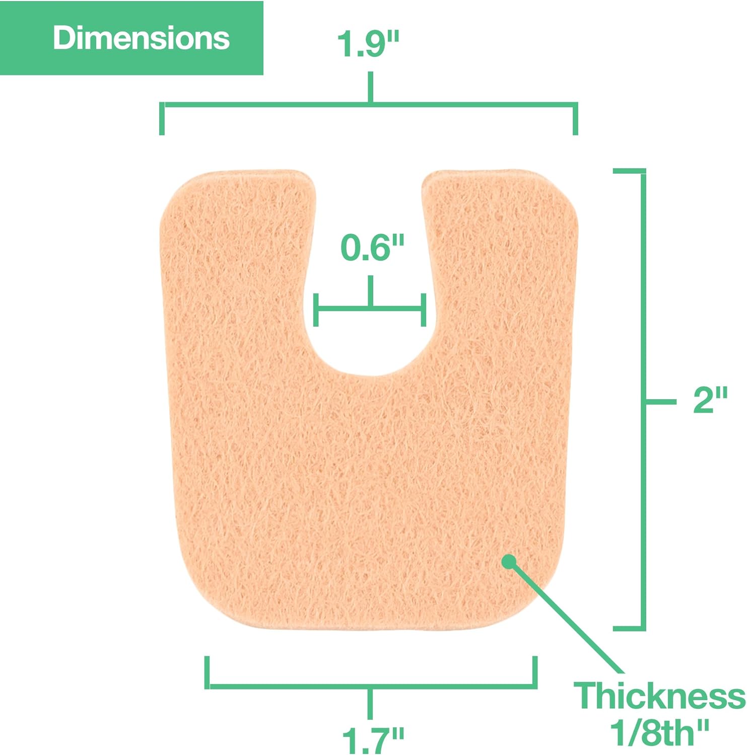- Protect and cushion calluses on the bottom of your feet and heels with ZenToes horse shoe shaped felt callus pads. These generous foot cushions are approximately 1/8β thick. Across the top measures approximately 1.9β, the bottom 1.7β and 2β tall. The width of the interior of the U is approximately 0.6β.