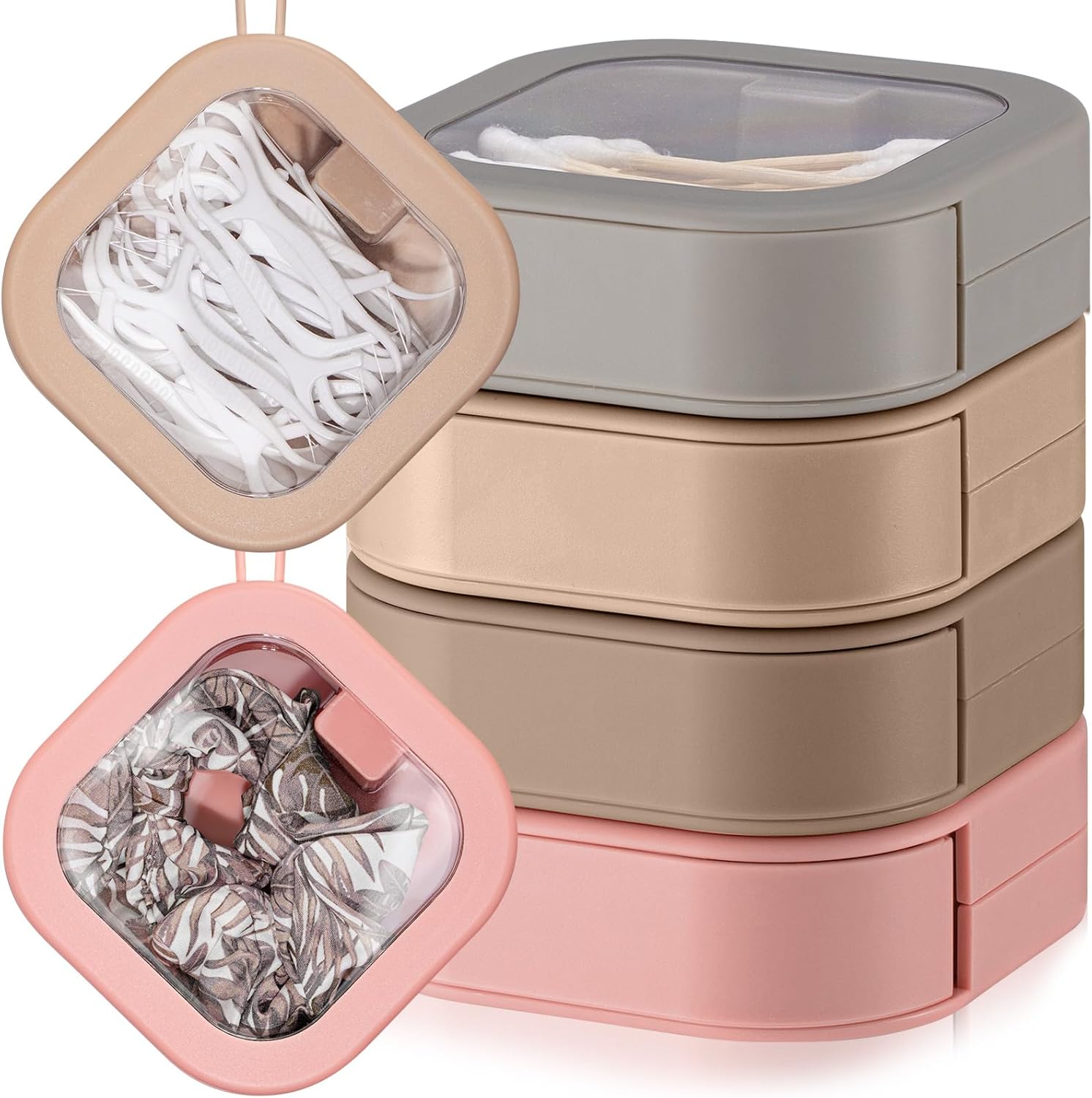 Kathfly 4 Pcs Multicolor Hair Tie Organizer Portable Hair Accessory Storage Containers Stackable Tie Bobby Pin Holder Home Cotton Swab Dispenser Accessories Jewelry Organizer Box
