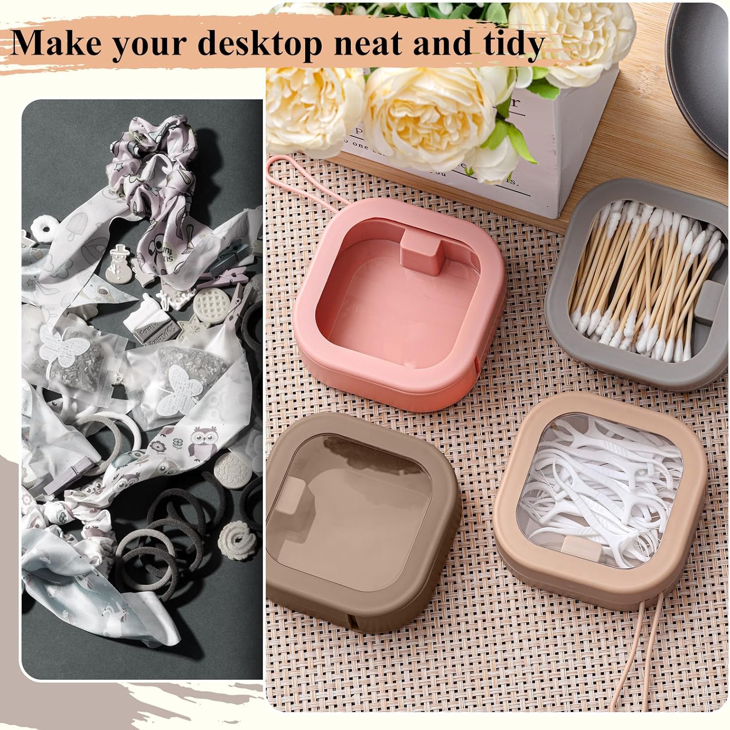 - Package Includes: you will receive 4 pieces of hair tie organizers in pink, brown, khaki, yellow; They are cute and delicate, which can meet your daily storage and replacement needs without taking up too much space