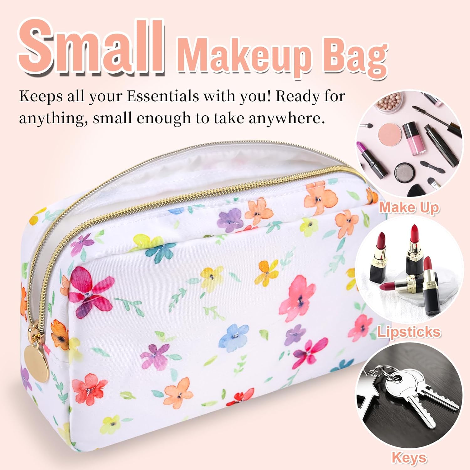 - ❤【Premium Materials】Small floral makeup bag is made of high-quality nylon waterproof material and durable gold zipper, which does not fade, has no peculiar smell, and is durable. Stylish appearance, easy to wipe clean, dustproof and waterproof. The makeup pouch interior is covered with thick sponge to protect your belongings at all times.