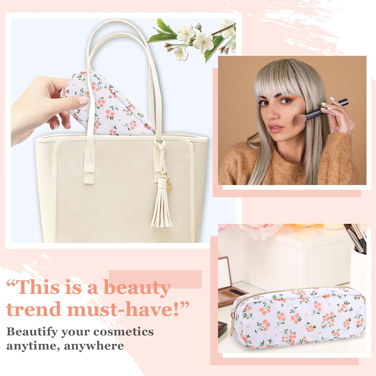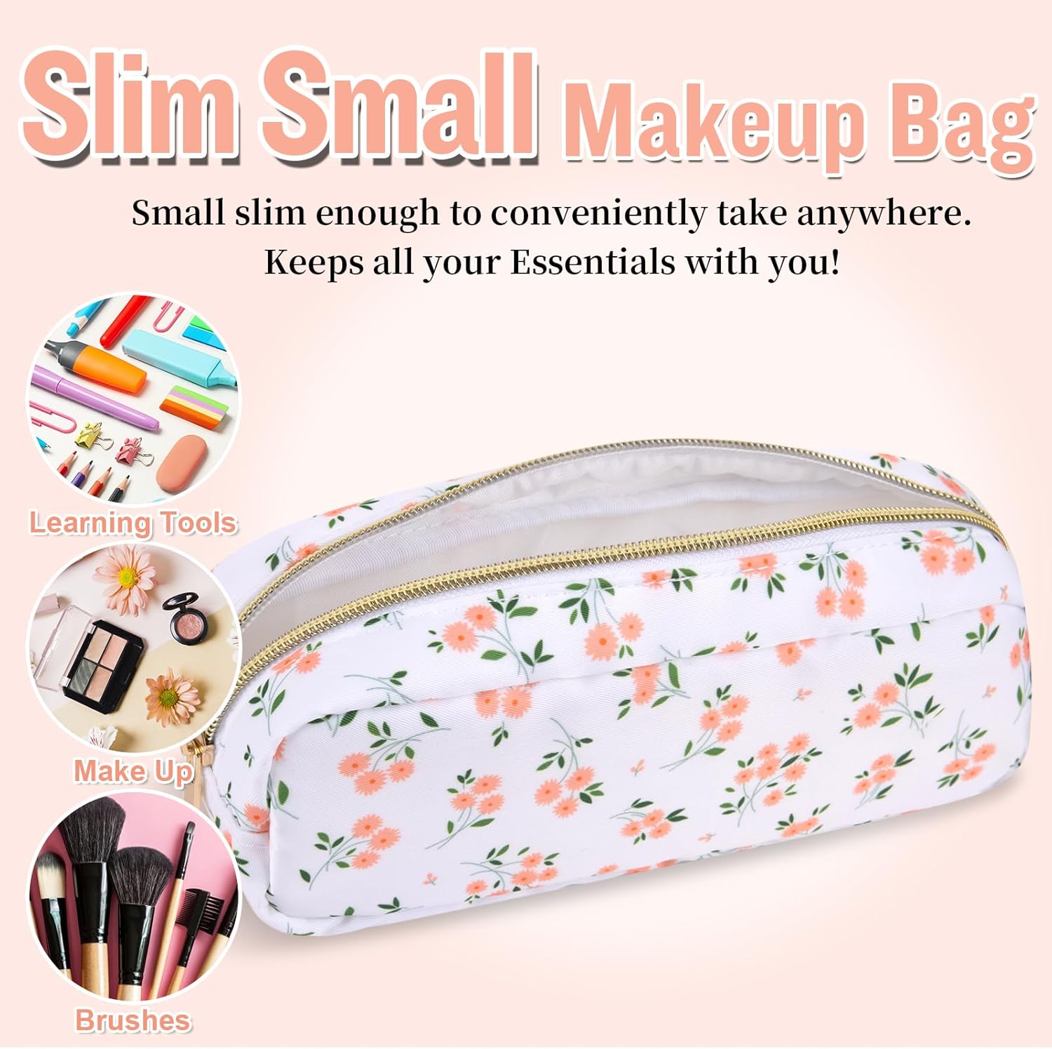 - ❤【Premium Materials】Slim Small floral makeup bag is made of high-quality nylon waterproof material and durable gold zipper, which does not fade, has no peculiar smell, and is durable. Stylish appearance, easy to wipe clean, dustproof and waterproof. The makeup pouch interior is covered with thick sponge to protect your belongings at all times.