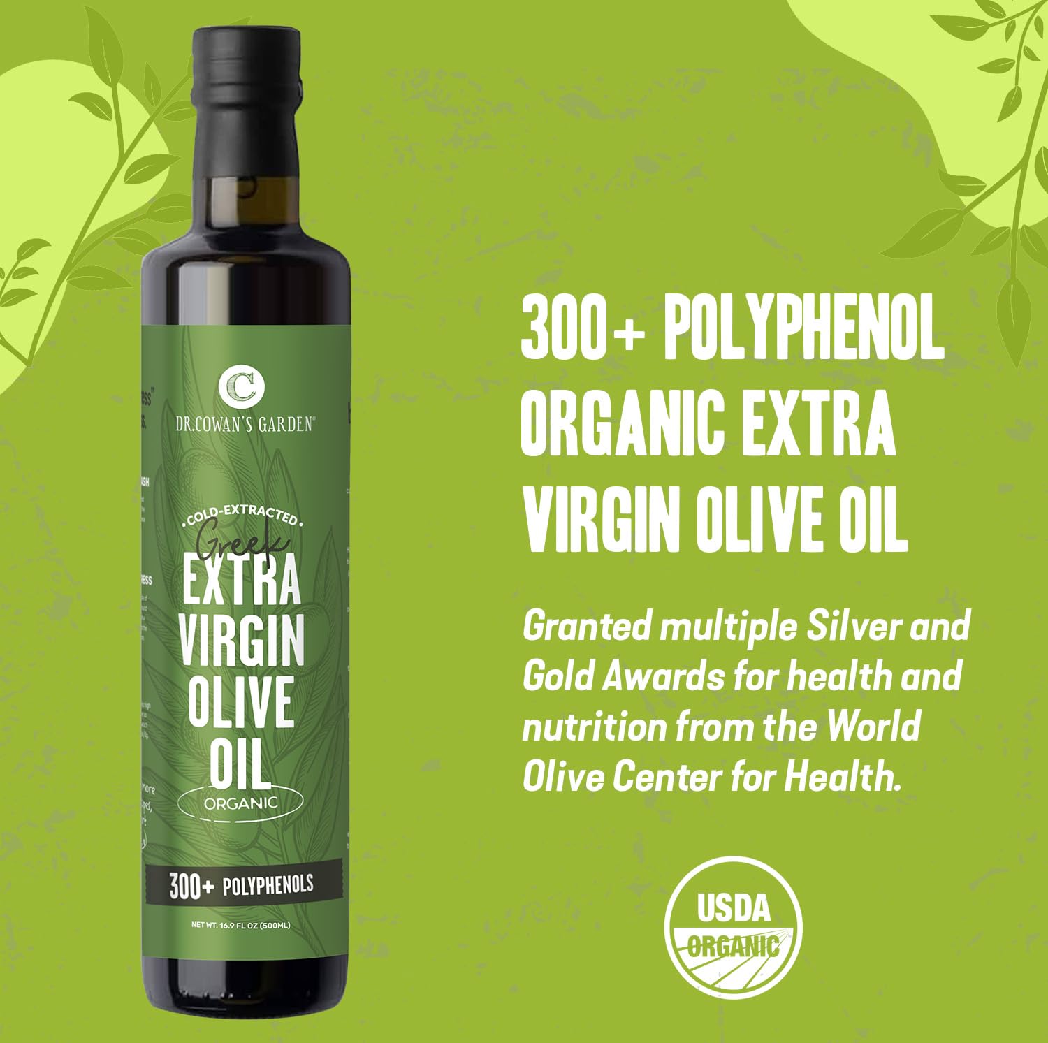 - OUR FOUNDING MISSION: Here at Dr. Cowan’s Garden, we are passionate about improving human, ecological, and economic health by increasing the cultivation and consumption of plant diversity. Our 300+ Polyphenol Extra Virgin Olive Oil is a testament to this mission, and we hope that you love it. We want to make it simple for you to consume a varied and diverse profile of nutrients. Enjoy increasing your polyphenol intake with this rich high polyphenol extra virgin olive oil.