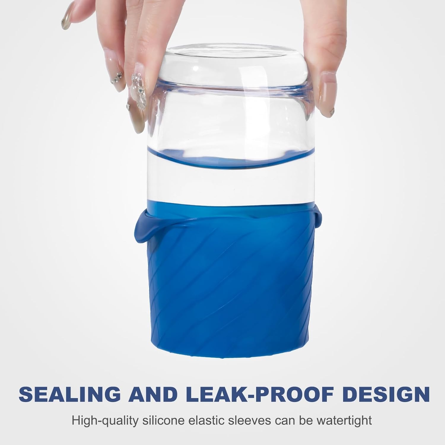 - EASY TO INSTALL: Put this leak-proof sleeve on bottles that are prone to leakage. It can be firmly fixed on the containers of toiletries and other beauty and personal care products. The silicone material can absorb the bottle to prevent leakage during travel and contamination of your Other items.