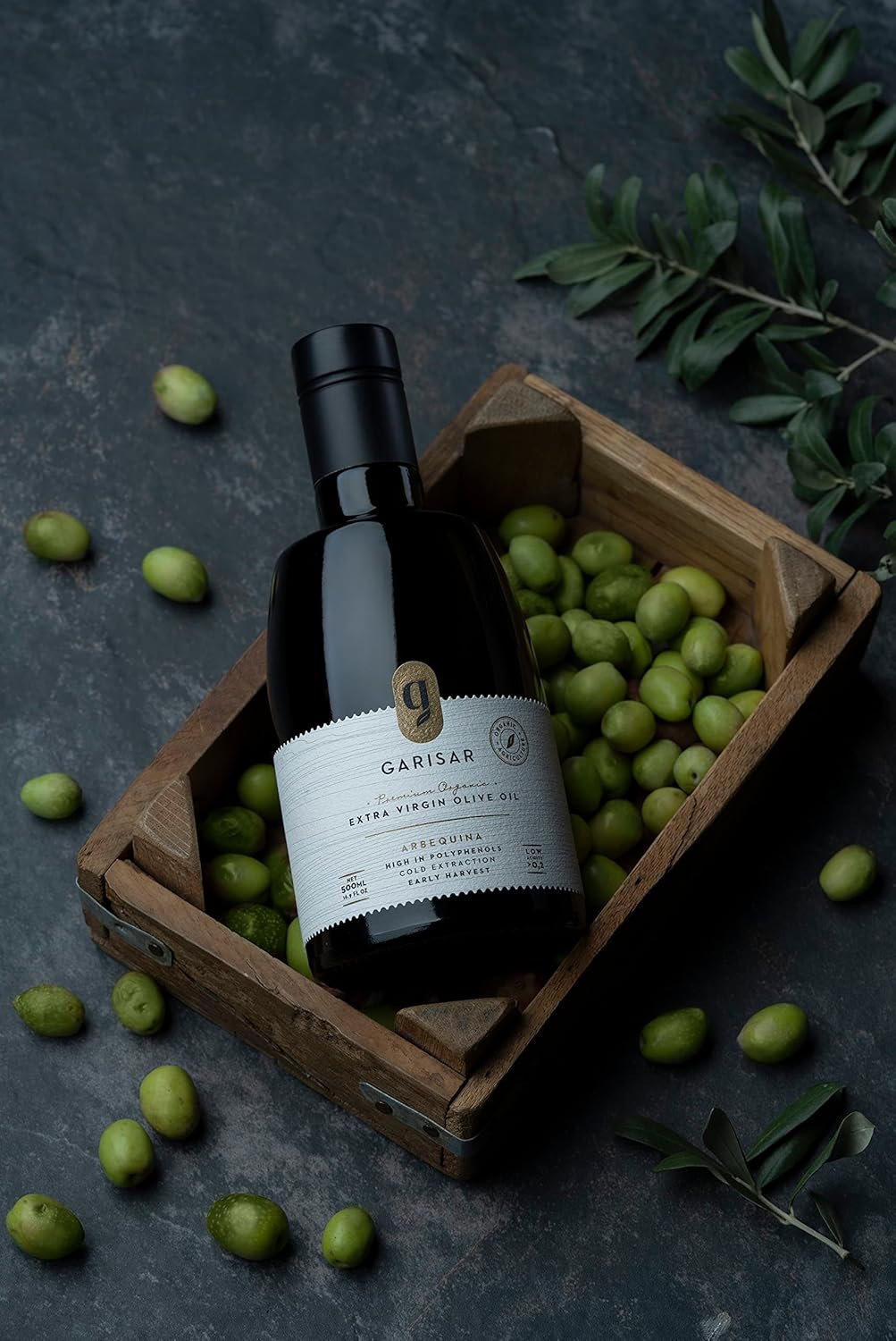 - 2023-2024 EARLY HARVEST ARBEQUINA: Pressed from olives that are harvested earliest in the season makes it higher in flavonoids and polyphenols and extra lower in acidity and gives a vibrant color. Harvested from the Arbequina olive trees, hand-picked with extra caution Garisar Olive Oil has the most delicate and pleasant flavor you can find in extra virgin olive oil. With its subtle nuts and fruit notes gives you the pleasure of knowing where you acquire your most significant part of diet.