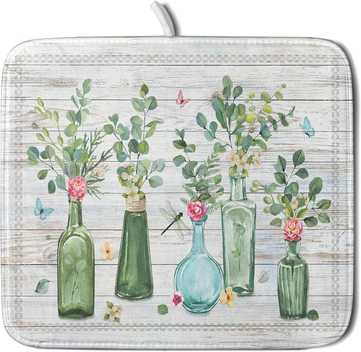 Fern Leaf Vase Dish Drying Mat 16x18 Inch Eucalyptus Leaves Microfiber Absorbent Dish Drainer Mat Reversible Drying Pad for Kitchen Counter Sink
