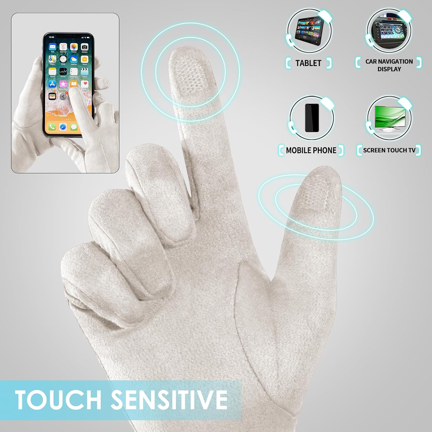 - Sensitive Touch Screen Finger: Unique and Practical 2 Touchscreen Fingers Capability design(thumb, forefinger), you can use the gloves on all your touch screen devices.The gloves work just like using your fingers.