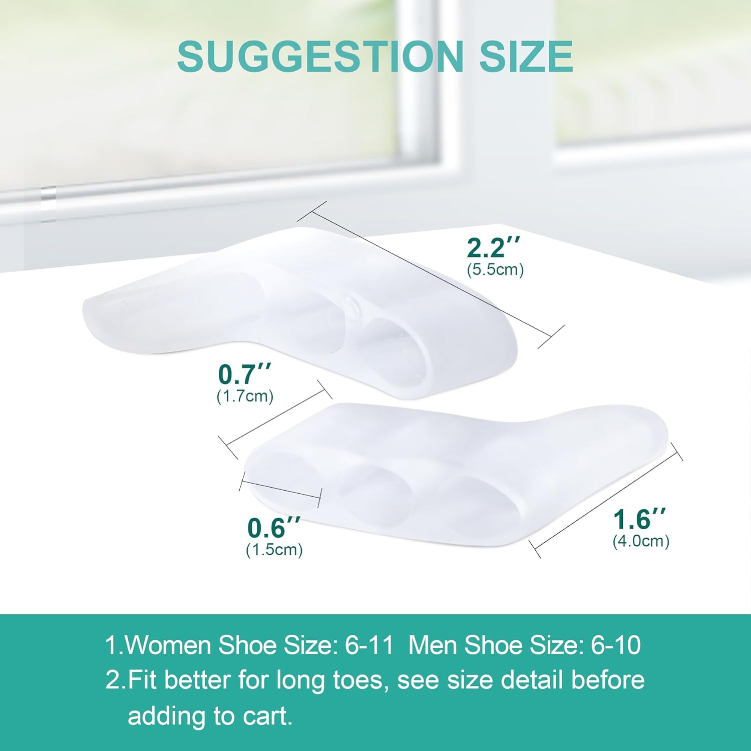 - Secure and Comfortable Fit: The three-hole design ensures the separators stay firmly in place throughout the day. The widened design fits well for long toes, providing consistent pain relief.