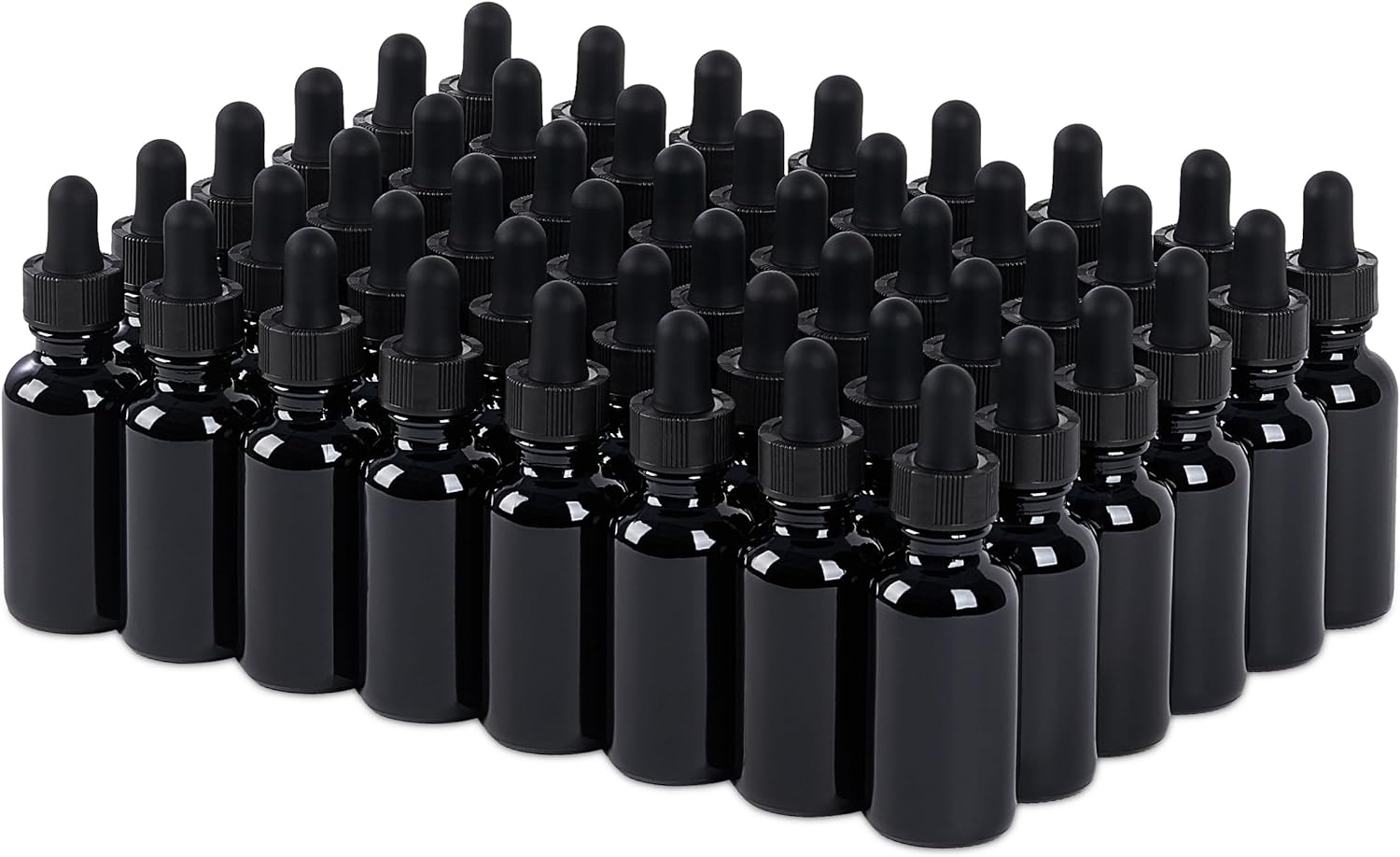 48 Pcs, 1oz Glass Dropper Bottle, Leakproof Tincture Bottles with Dropper, Black Reusable Eye Dropper Bottle for All Kinds of Liquids (Black,1oz-48pcs)