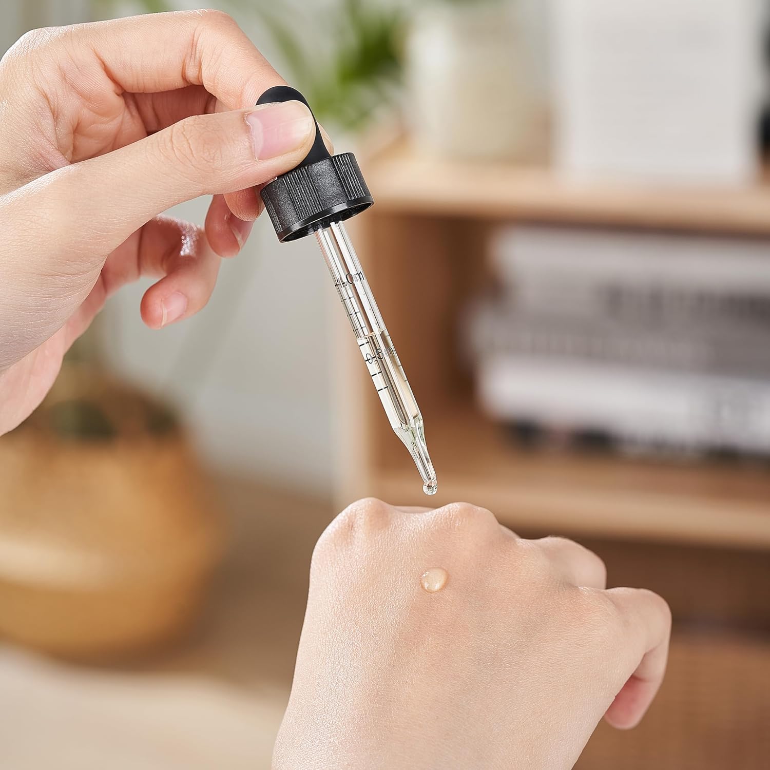 - 🧴【Precision Measurement Dropper】Glass dropper bottle feature pipettes with a 1 ml capacity, clearly marked scales, and excellent suction. These droppers ensure accurate measurement and efficient liquid extraction, preventing waste and offering a convenient, precise way to handle oils and other liquids