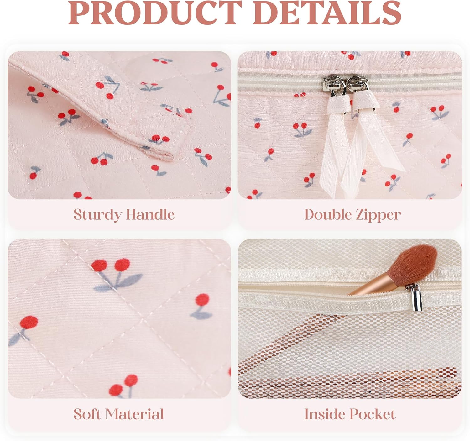 - ✅ High-Quality Material: Crafted from high-quality cotton, this makeup bag is easy to clean and maintain. The durable construction and premium materials guarantee long-lasting use and protection for your belongings.