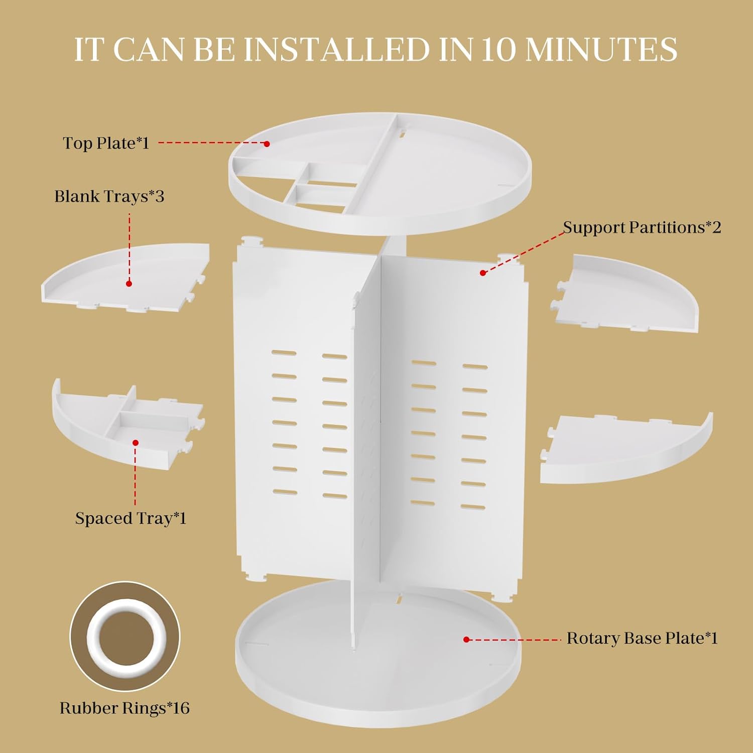 - 【7 ADJUSTABLE LAYERS & SAVE SPACE】✨360 rotating makeup organizer has four trays that you can adjust to easily store all your things. Ourmake up organizers can store at least 18 perfumes, 14 facial toners, 12 facial moisturizers, 8 makeup brushes, 6 powders, 5 makeup remover, etc. Save 70% of your desktop space.