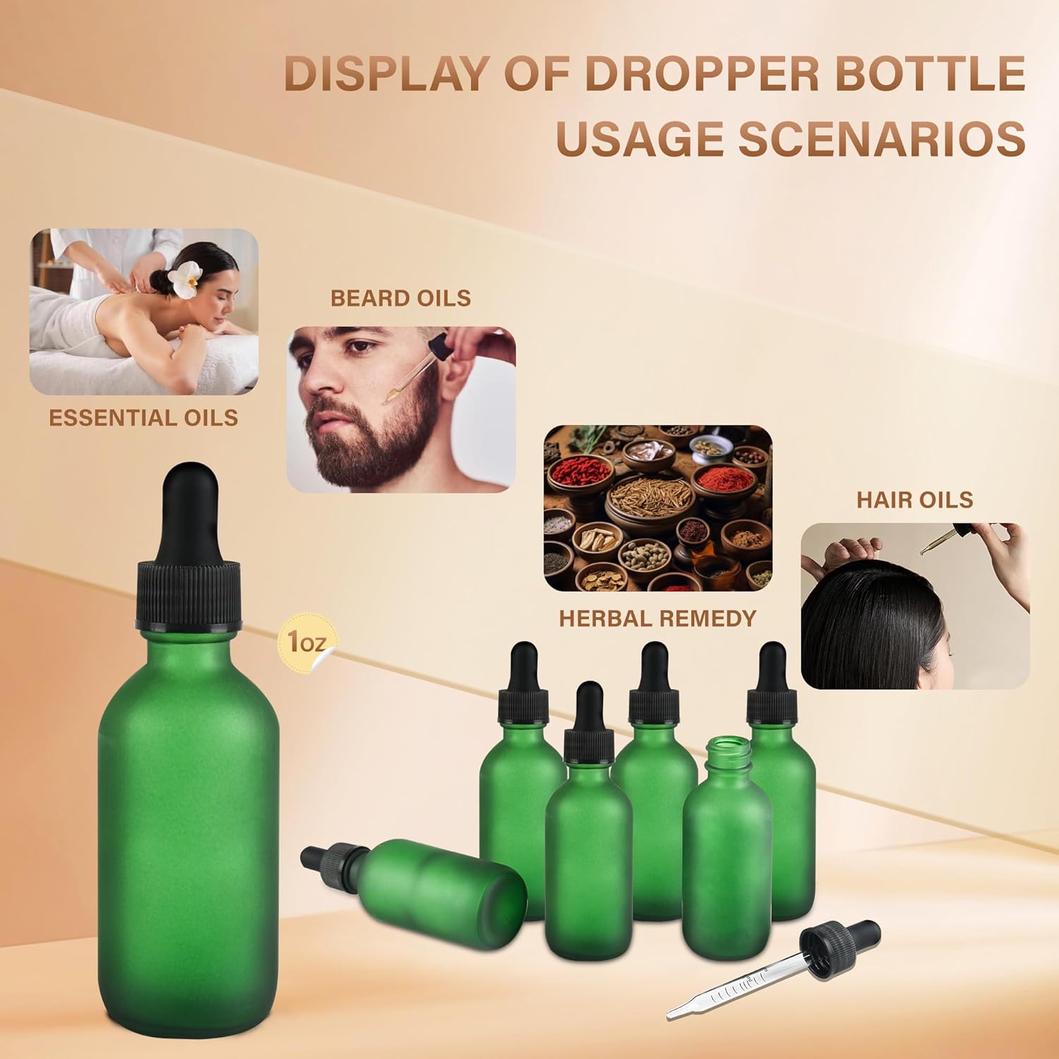 - 🧴【Multi-purpose】Eye dropper bottle can be as dispensers, you to fill in essential oils, colognes, tinctures, cosmetics, perfume oils, beard oils, hair oils or other liquids.This makes it easy to show samples to clients in your massage, beauty shop, hair salon, aromatherapy and alternative medicine practice.