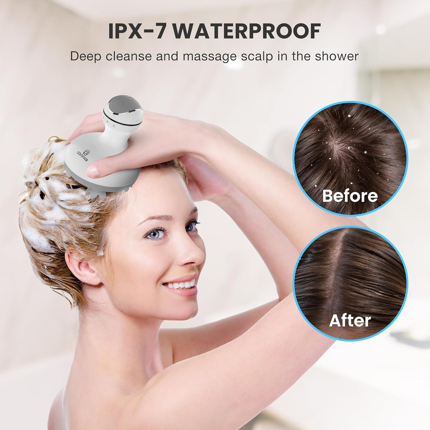 COMFIER Cordless Scalp Massager Hair Growth,Electric Head Massager Scalp Stress Relax with4 Soft Silicone Massage Heads,Waterproof Hair Massager Scalp,Dog&Cat Massager,Gifts for Him Her