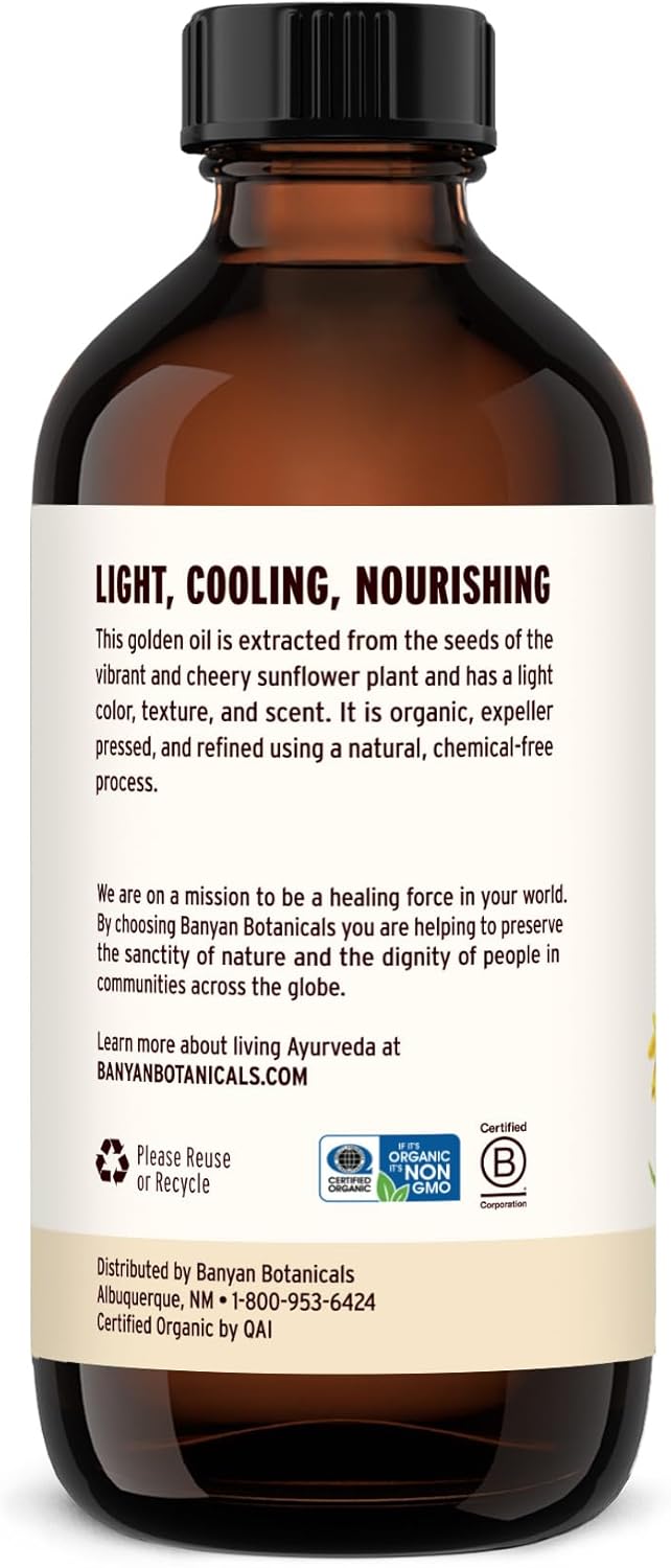 Banyan Botanicals Sunflower Oil – Pure & Organic Sunflower Seed Oil for Skin, Body, Hair & More – Multiple Sizes – 8 oz – Expeller Pressed Non GMO Chemical Free