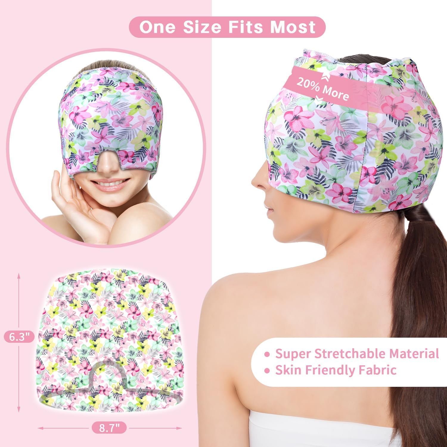 - 【Two ways to wear & Come with gel eye mask】The Headache Cap offers two flexible wear modes to suit different daily needs. At work or in daily activities, you can choose the semi-coverage mode to maintain easy sight and freedom of movement. While at rest or sleeping, Full coverage mode can provide you with a deeper level of relief and relaxation. In order to meet the diverse needs of users, we also kindly included a gel eye mask.