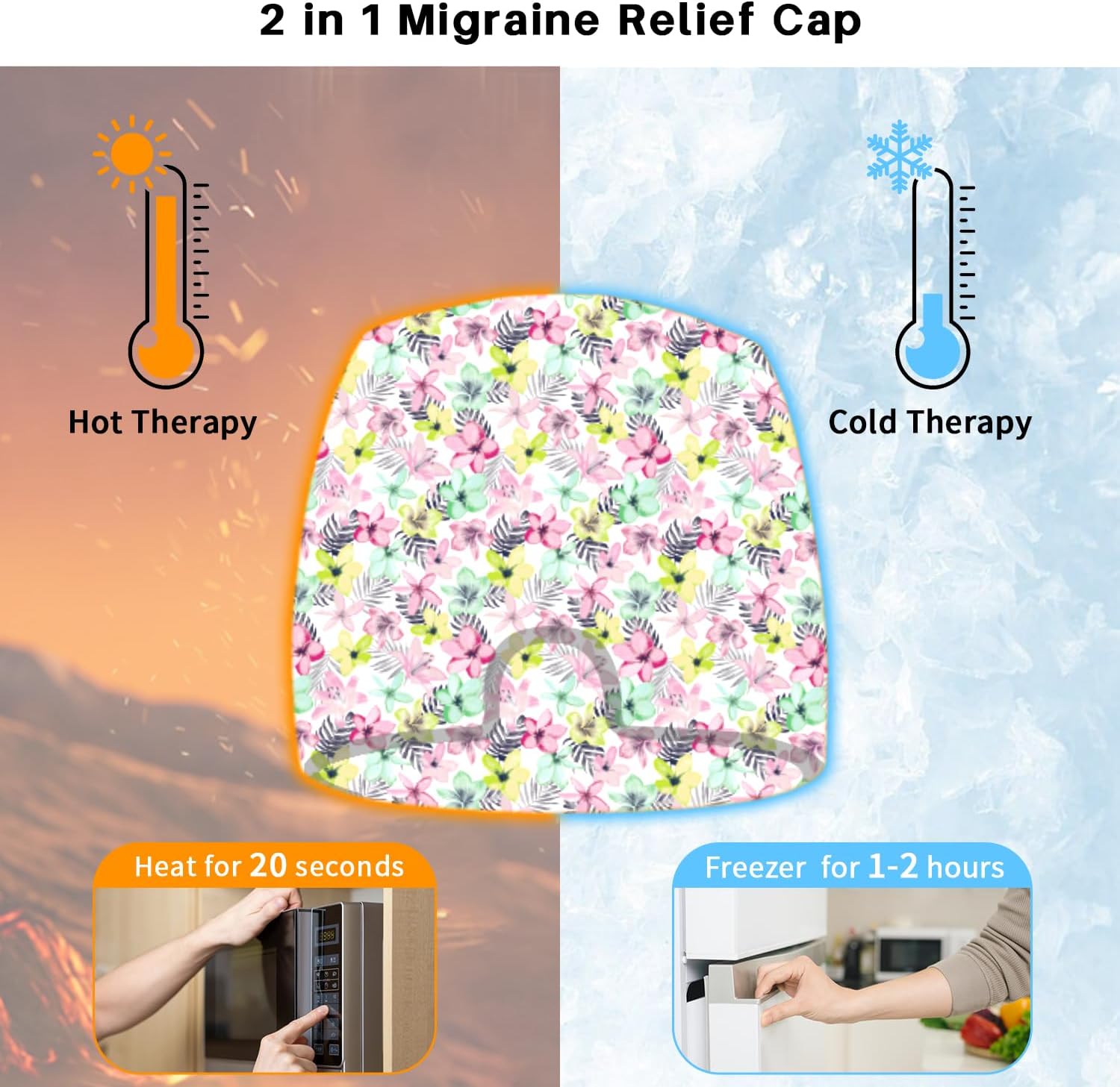 - 【Hot and Cold Treatment】The Migraine mask relieves the symptoms of migraines through hot and cold therapy, cold compresses need to be refrigerated for 1-2 hours, and hot compresses need to be heated in the microwave for 20 seconds. If it feels too hot, you can cool it for a few minutes before use, until the temperature of the product is close to the body surface temperature. This migraine ice cap is reusable and hot and cold enough to relieve all types of headaches, migraines, stress.