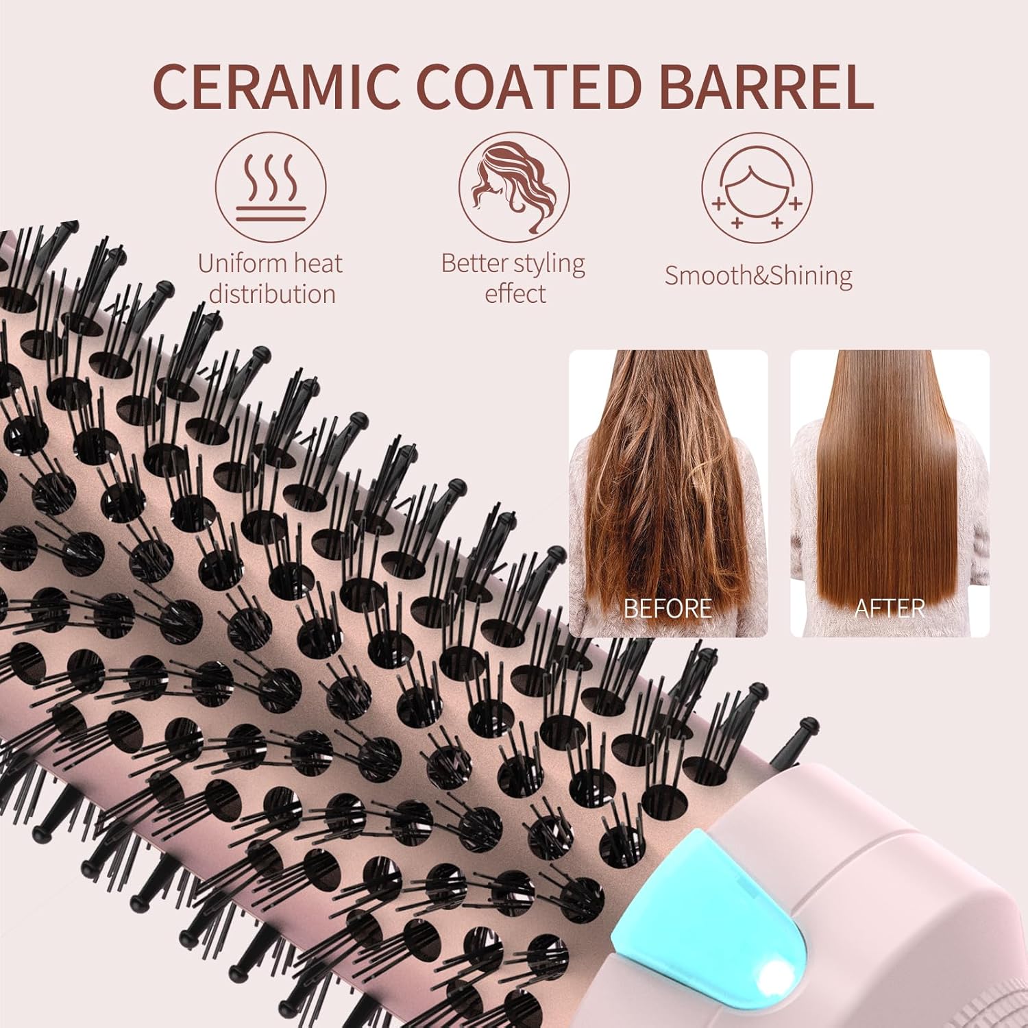 - Up to 50% smoother hair: our heated round brush will caress each strand of your hair with negative ions, locking in moisture and making your hair smoother, reducing frizz and tangles. It allows you to effortlessly create smooth and long-lasting curls