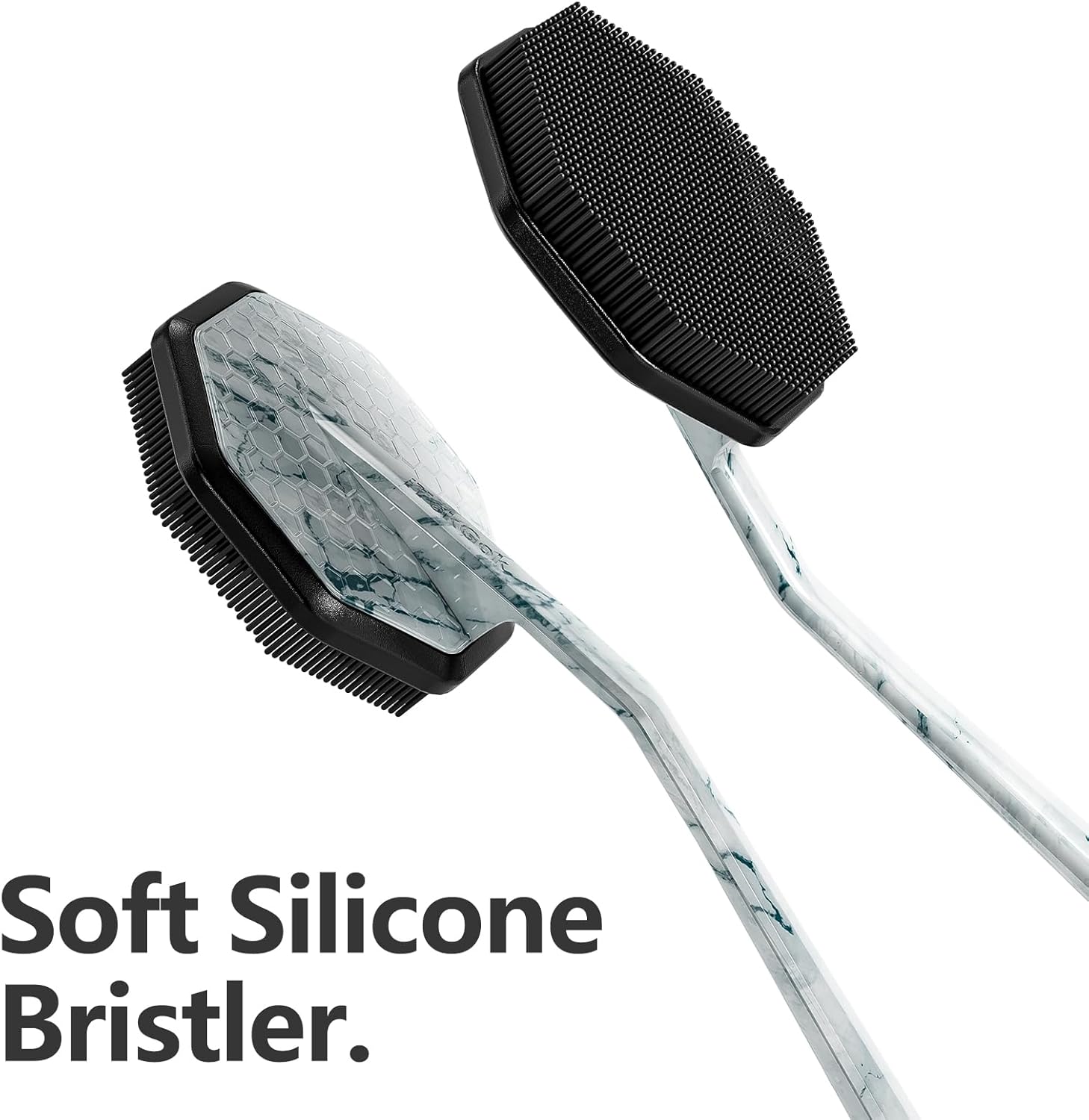 iTokGoK® Platinum Green Emerald Silicone Back Scrubber with Long Handle Back Brush for Shower,Silver-Infused Back Scrubber for Men and Women