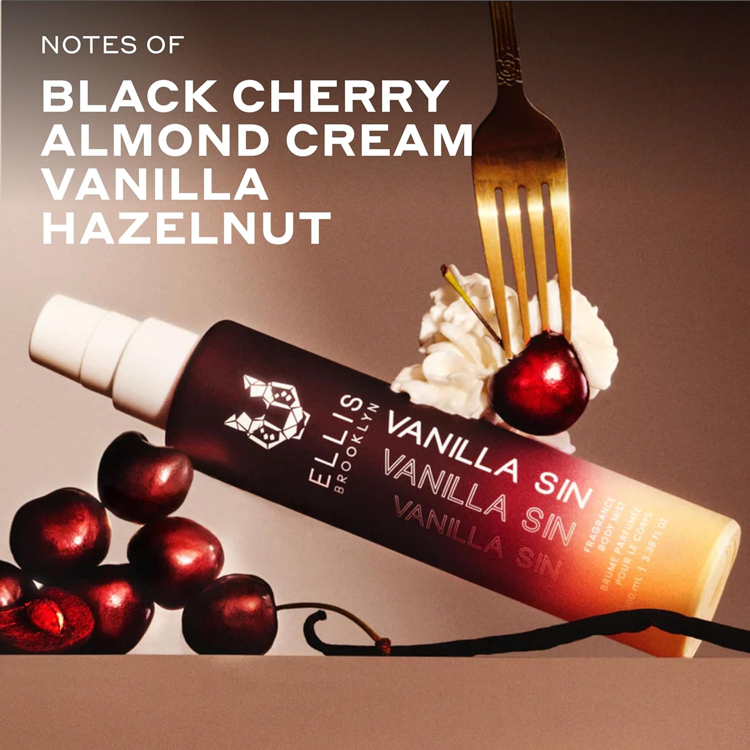 - A vanilla fragrance body mist that could become your biggest vice. This sinful combination of black cherry, hazelnut, almond cream and Bourbon vanilla is intoxicating and divine.