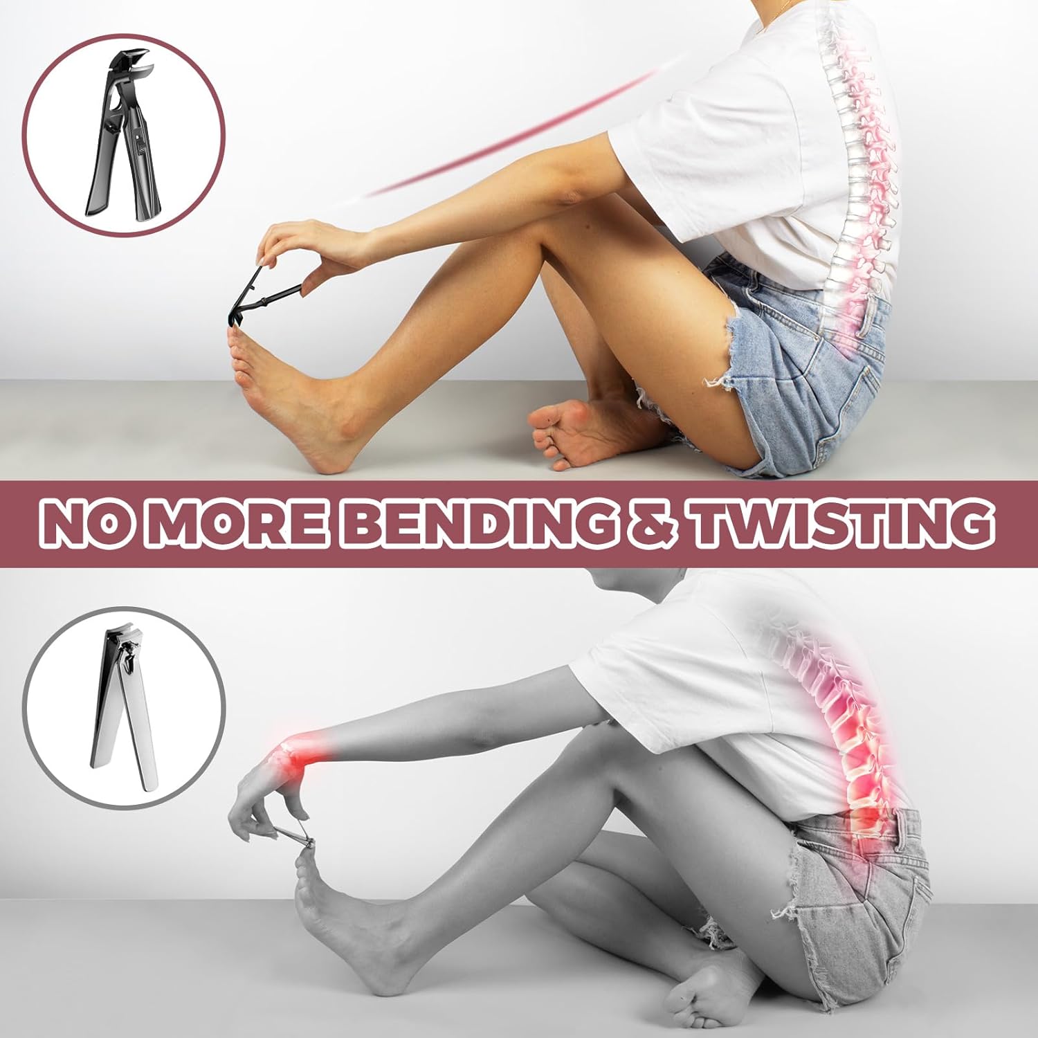 - Ergonomic Design for Comfortable Use - Nail clippers for seniors feature a unique angled head, allowing to hold the clippers naturally without bending or twisting hands while trimming toenails. The unique angled head also provides a clear view of both blade and nail, enabling precise trimming in any position. It is very suitable for seniors, men, women, adults, teens, and especially for elderly with thick toenails and pregnant women with limited mobility.